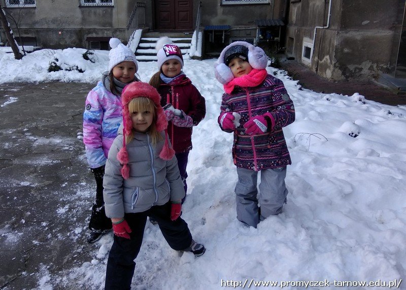 Zima w pełni, dlatego grupa Zuchów korzysta z pięknej pogody i codziennie bawi się na śniegu. Dzieci chętnie oddają się zimowemu szaleństwu lepiąc bałwana czy rzucając się śnieżkami.