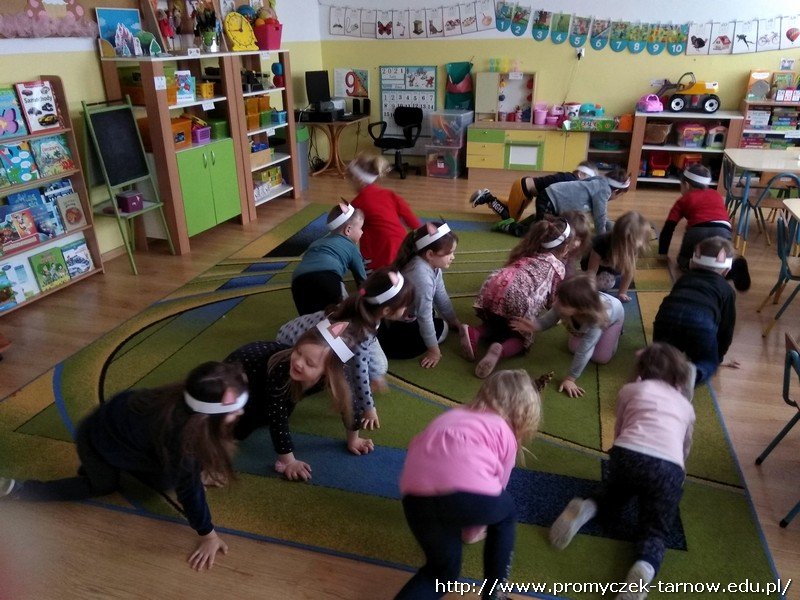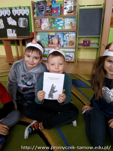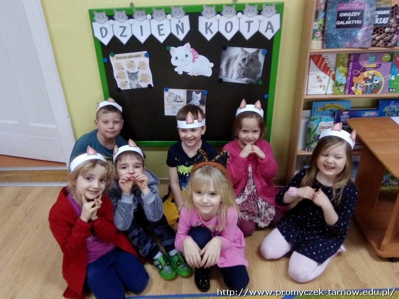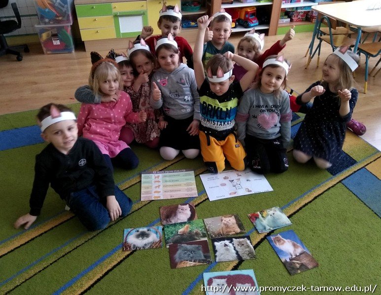 17 lutego już od rana w sali starszaków można było wyczuć radosne wyczekiwanie, gdyż akurat tego dnia miał odbyć się Dzień kota. Nie ulega wątpliwości, że starszaki to prawdziwi miłośnicy kotków. Przystrojeni w kotkowe opaski dzieci rozpoczęły zajęcia, dowiedziały się o rasach kotów, o kocim języku ciała, a co najważniejsze o pielęgnacji kotów i obowiązkach ich właścicieli. Pogadanki przeplatane były ciekawymi konkurencjami jak zwijanie myszki na czas czy picie mleczka. Zuchy wykonały także trzy zadania, uważnie wysłuchały wiersza, odpowiadały na pytania do niego, dokonały opisu kotka, a także stworzyły kocią książeczkę o kotku Mruczusiu. Już nie możemy się doczekać kolejnego Dnia Kota.