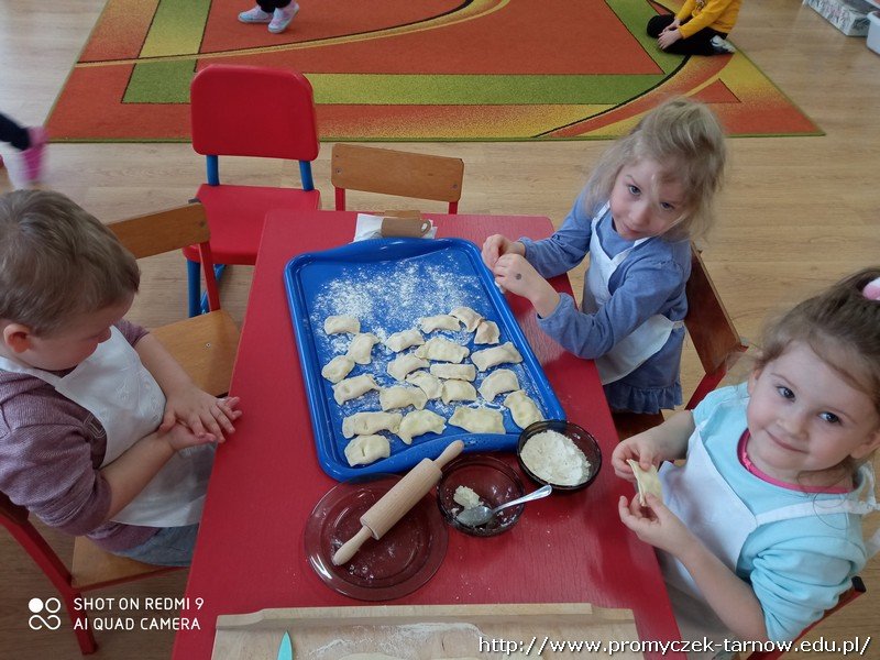 Dnia 1 marca obchodziliśmy Dzień Pieroga, z tej okazji nasze przedszkolaki wraz ze swoimi paniami przygotowały przepyszne słodkie pierogi z serem. Nasze Promyczki miały okazję samodzielnie przygotować ciasto, wałkować oraz kleić pierogi, które później ze smakiem zostały zjedzone na obiad.