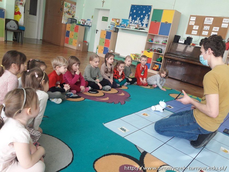 16 marca w naszym przedszkolu, odbyły się zajęcia z robotyki. Przedszkolaki miały możliwość poznania nowoczesnych form kodowania, co też im się bardzo spodobało. Przy pomocy robota dzieci, powtórzyły nazwy zwierząt oraz ich odgłosy. Zaplanowały drogę robota przy pomocy obrazków przedstawiających różne zwierzęta.