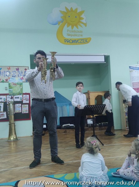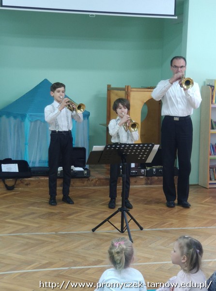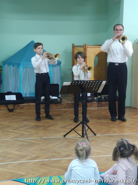 W ubiegłym tygodniu w naszym przedszkolu odbyła się kolejna audycja muzyczna organizowana przez Pracownię Jaszczur & Przyjaciele. Spotkanie to było wyjątkowe ponieważ tym razem nasze przedszkolaki miały okazję poznać instrumenty dęte oraz wysłuchać wspaniałego trio muzycznego, prezentowanego przez Pana Krzysztofa i jego dwóch niezwykle utalentowanych synów Gabrysia i Krzysia. To był wspaniały koncert!