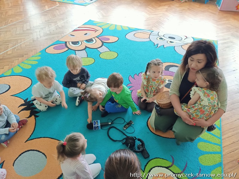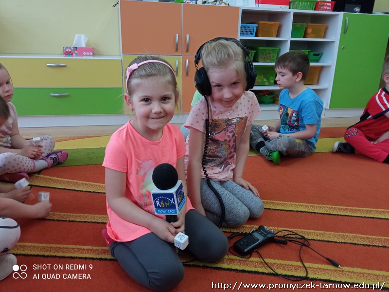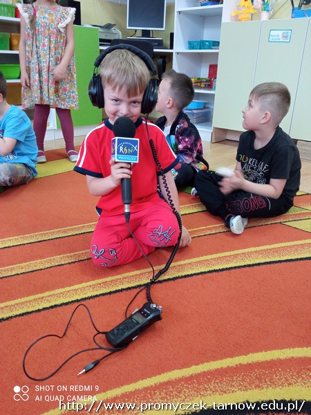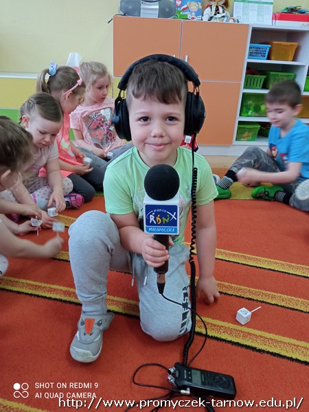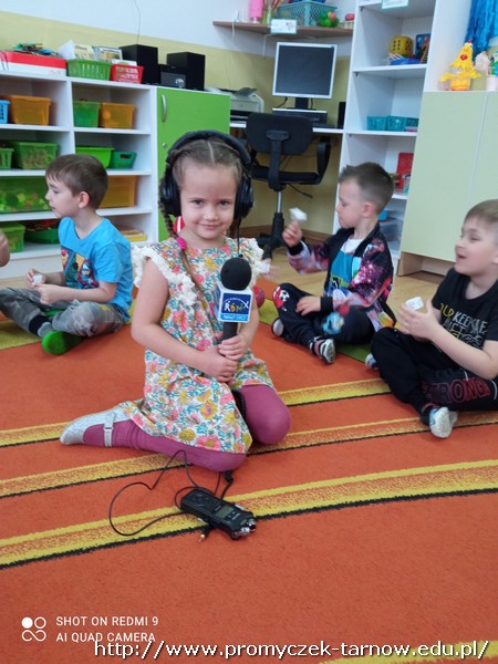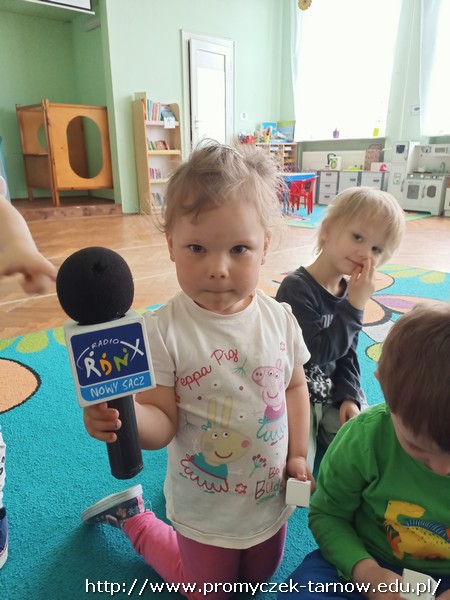 Każde dziecko wie jak wygląda radio i do czego służy, jednak czy wie, kim jest radioweic? Nasze Promyczki już to wiedzą, gdyż odwiedziła nas Pani, które pracuje w radiostacji RDN Małopolska, a która prywatnie jest mamą dwóch naszych koleżanek z przedszkola. Pani Joanna opowiedziała nam, czym się zajmuje ona i jej koledzy ze stacji, pokazała nam także sprzęt potrzebny do nagrania wywiadu i audycji oraz odpowiadała na mnóstwo pytań zadawanych przez dzieci. Na koniec rozdała wszystkim pyszny radiowy upominek.