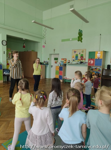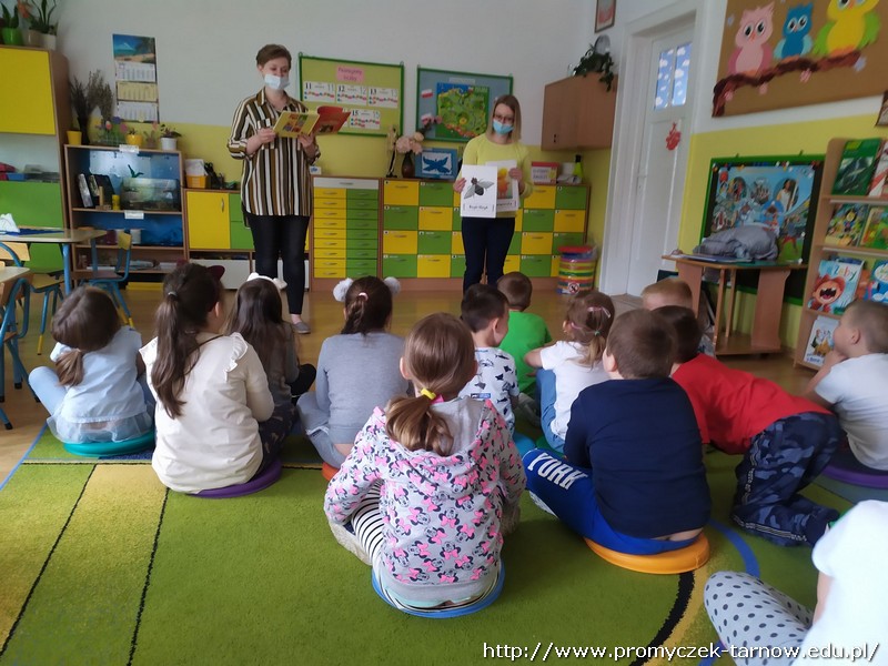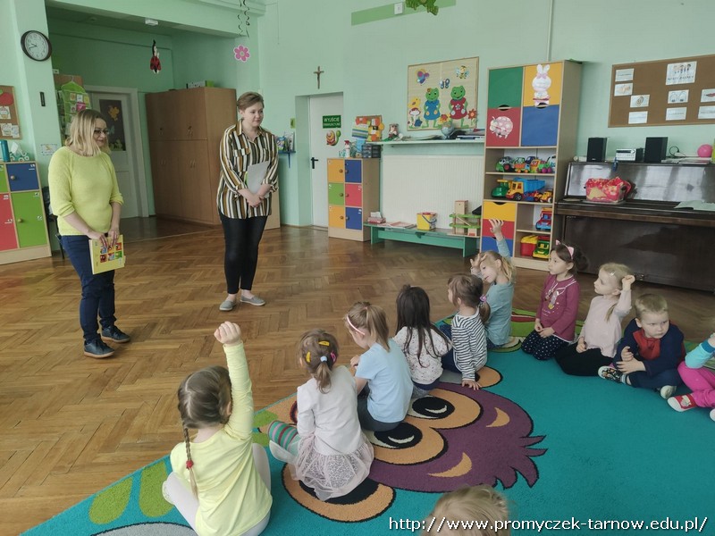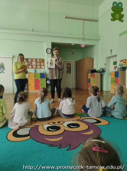 W poniedziałek 31 maja dzieci z Przedszkola "Promyczek" gościły Panie z Biblioteki Pedagogicznej w Tarnowie. W ramach akcji "Cała Polska czyta dzieciom" Panie bibliotekarki zaprezentowały przedszkolakom bajeczkę pt. "Pan Kuleczka" i zachęcały do jak najczęstszego czytania książek w domu. Nie zabrakło również wspólnych zabaw przy skocznej muzyce. to było bardzo miłe spotkanie!