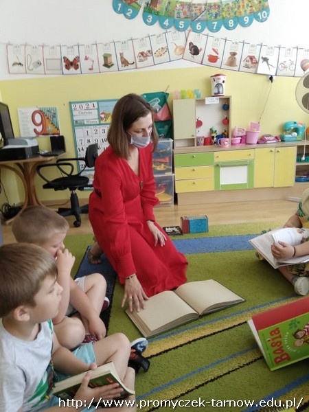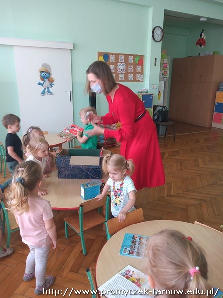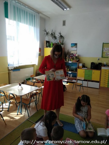 W ubiegłym tygodniu przedszkolaki miały wyjątkowego gościa - mamę jednego z naszych Przedszkolaków, która zaprezentowała dzieciom zawód bibliotekarza. Promyczki dowiedziały się co można robić w bibliotece, jakie znajdują się tam książki i przede wszystkim jak je wypożyczyć. Dzieci miały okazję pooglądać różne rodzaje książek: encyklopedie, bajki, czasopisma, komiksy, audiobooki oraz książki napisane językiem Braille'a. To było bardzo ciekawe doświadczenie. Dziękujemy za odwiedziny!!!