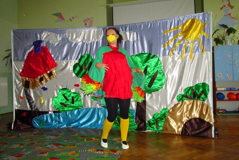 W piątek 24 października promyczkowe progi odwiedził teatrzyk z przedstawieniem „Idzie jesień”. Wszystkie grupy zgromadziły się w sali Smyków i grzecznie przywitały panie aktorki. O 10.30 widowisko rozpoczęło się!