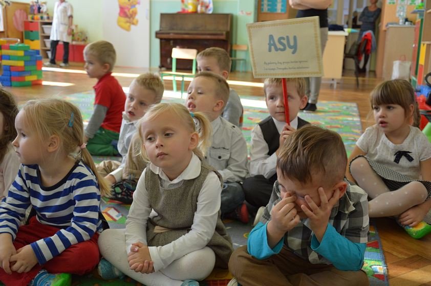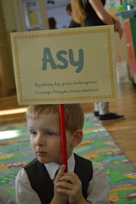Gdy część artystyczna dobiegła końca dzieci zostały jeszcze delikatnie „przetestowane’ przez prowadzącą – panią Ulę. Każda grupa musiała rozpoznać zagadkowe dźwięki, wykonać proste zadanie, a także odpowiedzieć na kilka pytań. Dzieci świetnie poradziły sobie z przygotowanymi konkurencjami, dlatego w nagrodę zostały im nadane nazwy grup – Smyki, Asy i Zuchy.