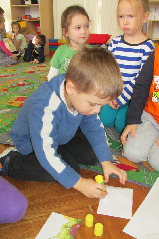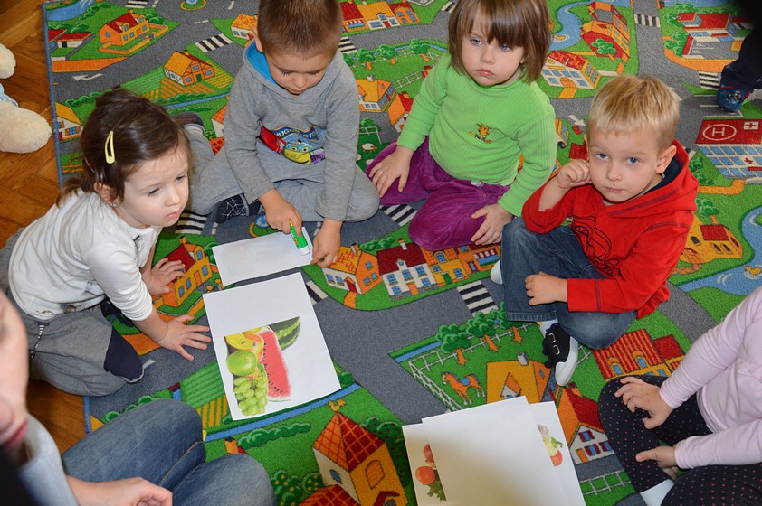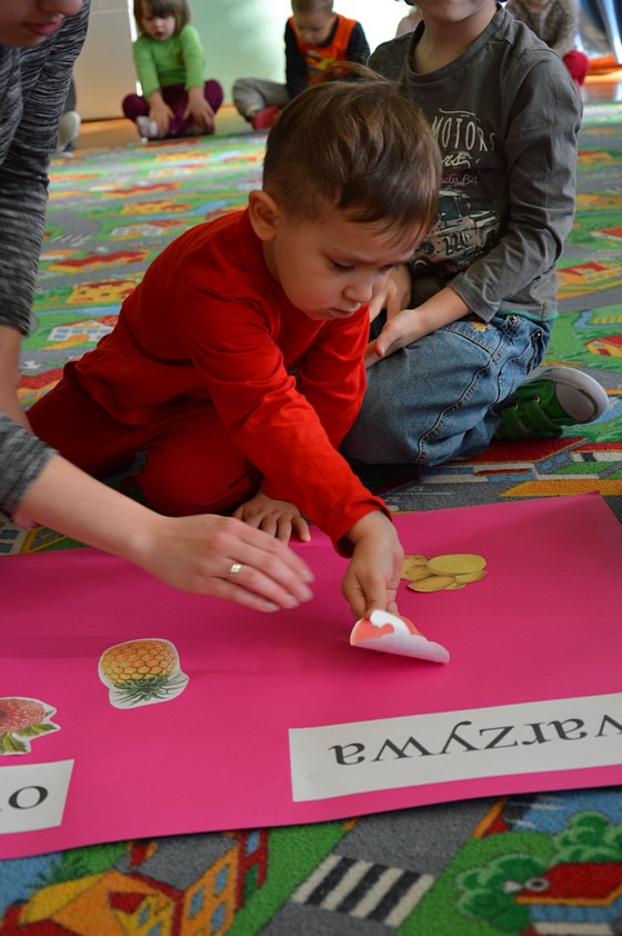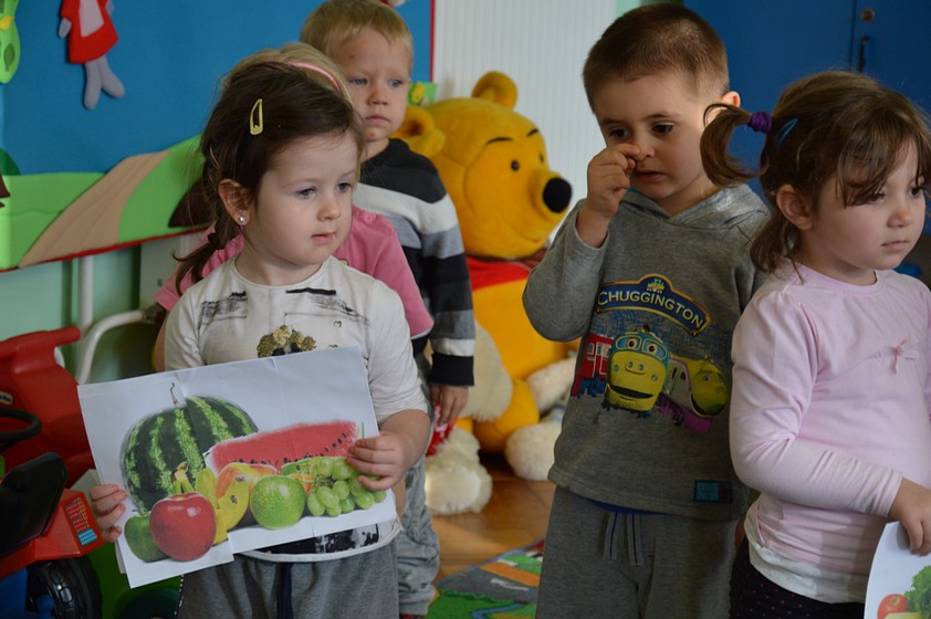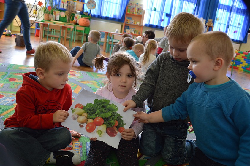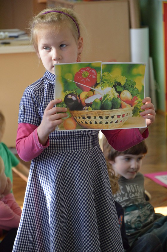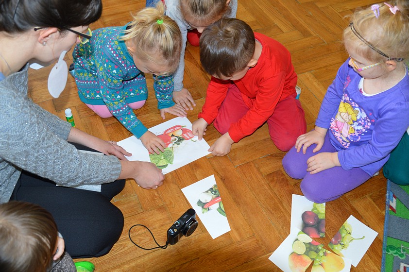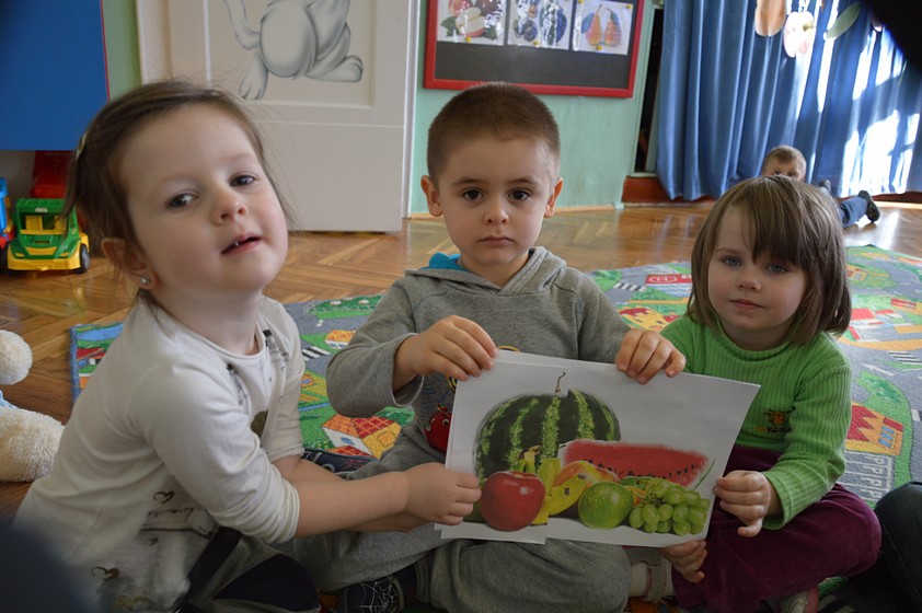 Owocowo – warzywne zabawy w sali Smyków przygotowała dla nas pani Paulinka. Były wspólne tańce, rozpoznawanie warzyw i owoców, pogadanka na temat witaminowego ABC. Dzieci dowiedziały się, że w truskawkach i marchewce jest witamina A, która działa dobrze na wzrok, banany zawierają witaminę B lubianą przez nasze brzuchy, a kiwi - witaminę C, która wspomaga odporność.