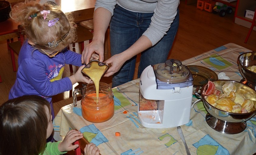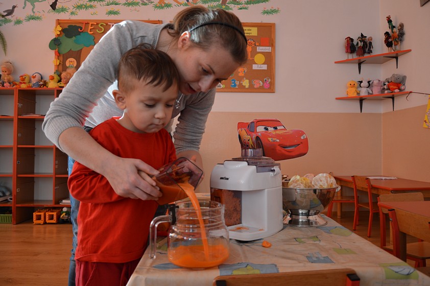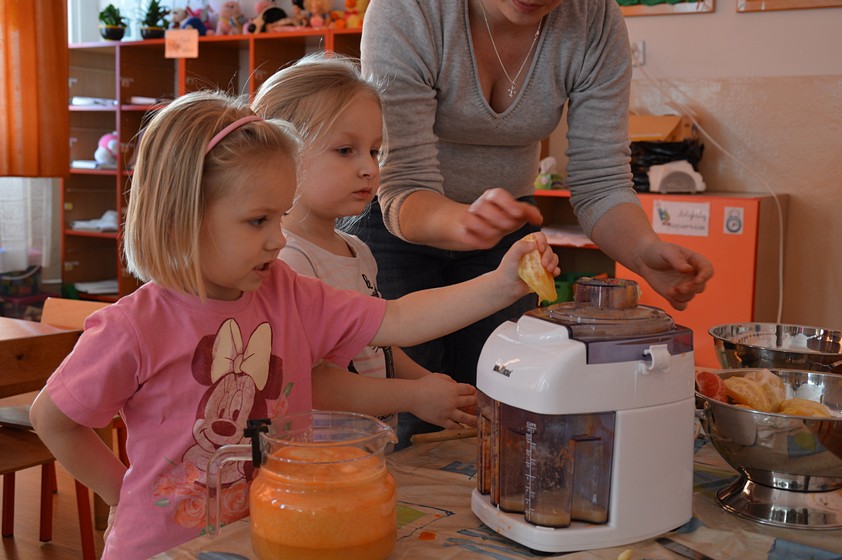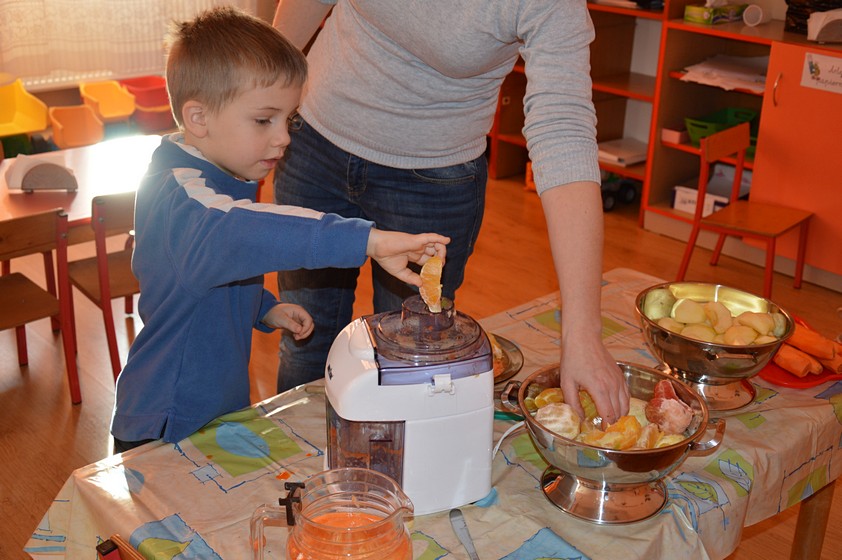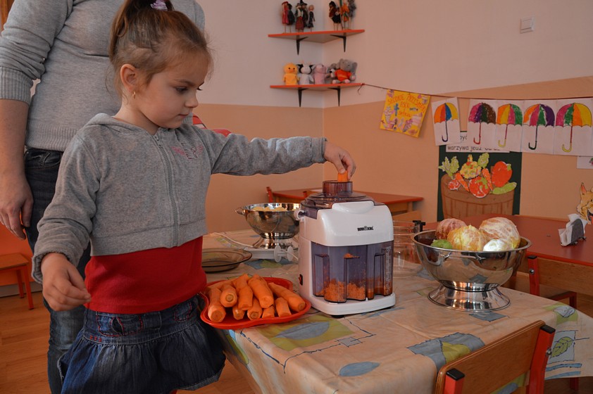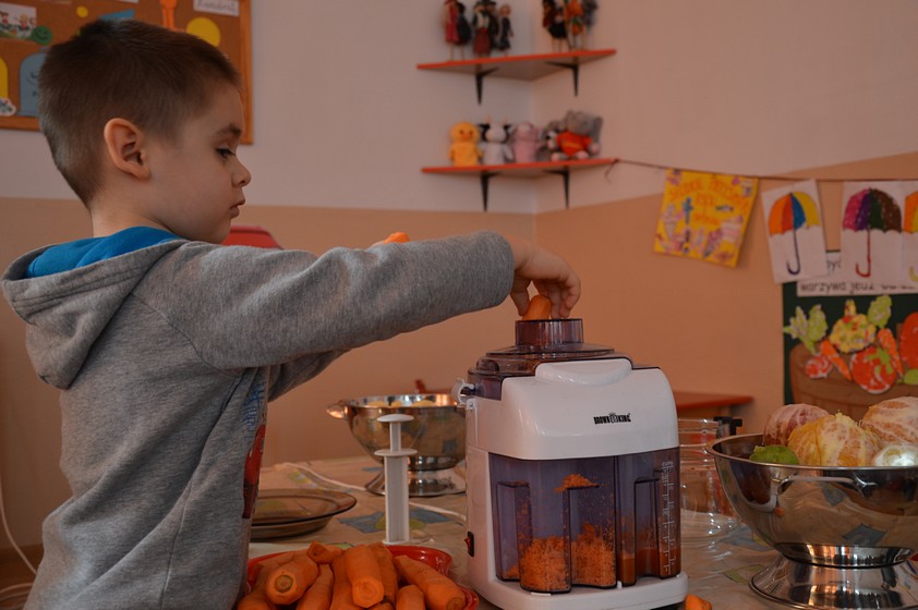 Nasze Przedszkolaki przygotowywały pyszne owocowo – warzywne soki w ramach odchodów Dnia Owoców, Warzyw i Soków. Dzieci pracowały w wielkim skupieniu, pamiętając o bezpieczeństwie swoim i innych.