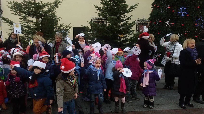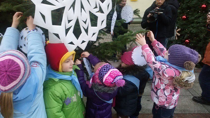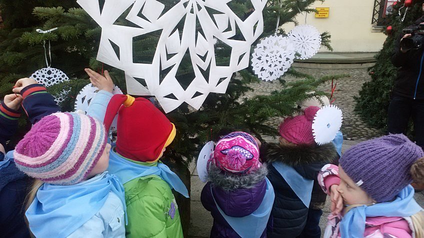 Dzieci z najstarszej grupy wraz z wychowawczyniami wykonały piękne śnieżynki z papieru, które teraz zdobią choinki w centrum Tarnowa.
