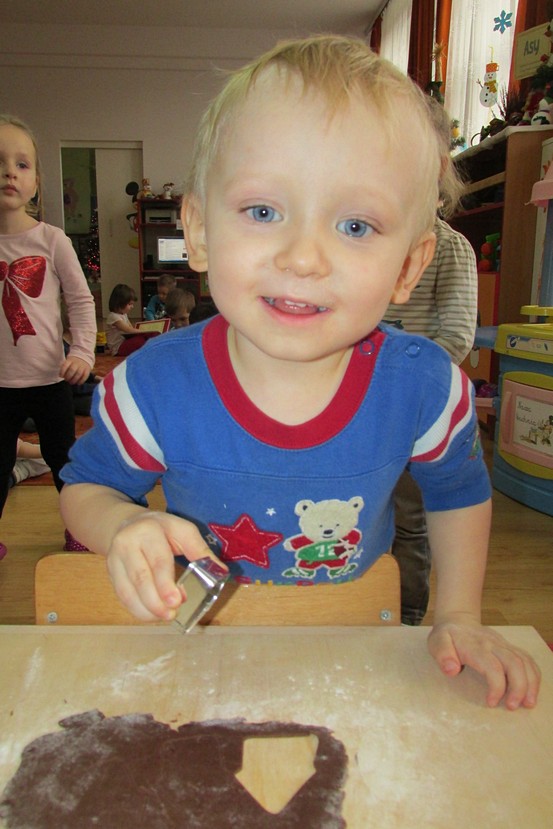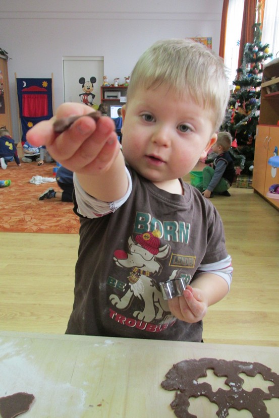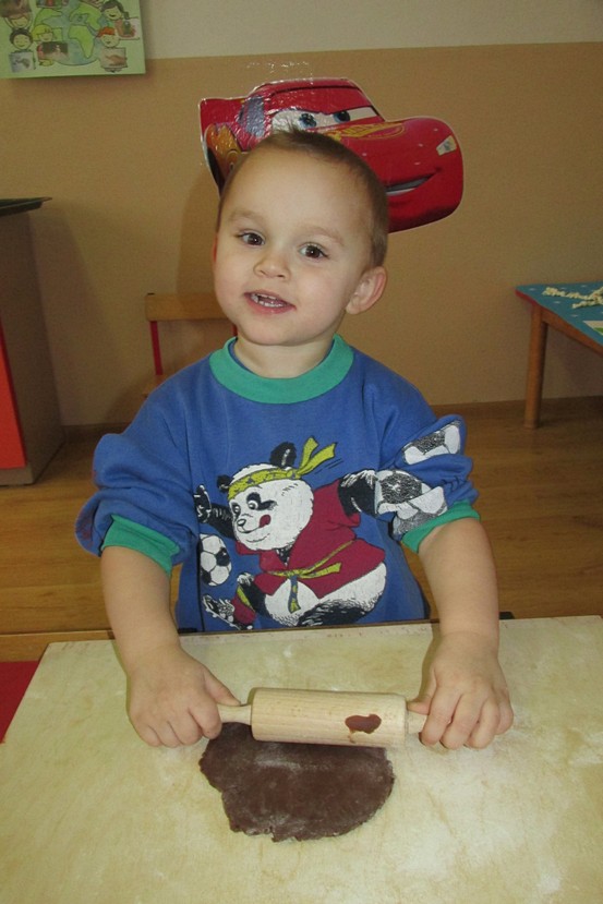 Idąc w myśl za tą zasadą dzieci z grupy Smyki i Asy zabrały się we środę – 17 grudnia 2014 roku za pieczenie pierniczków. Pani Ula z samego rana przygotowała ciasto, które czekało spokojnie w lodówce na czas zajęć.