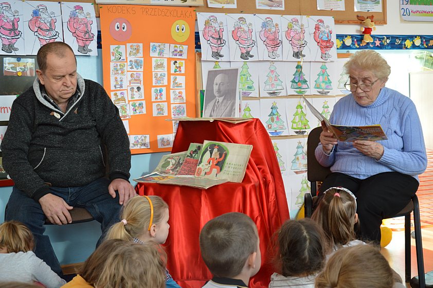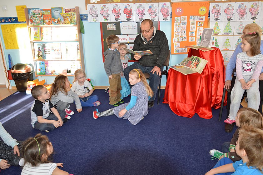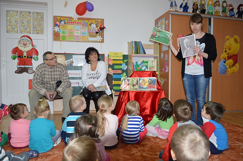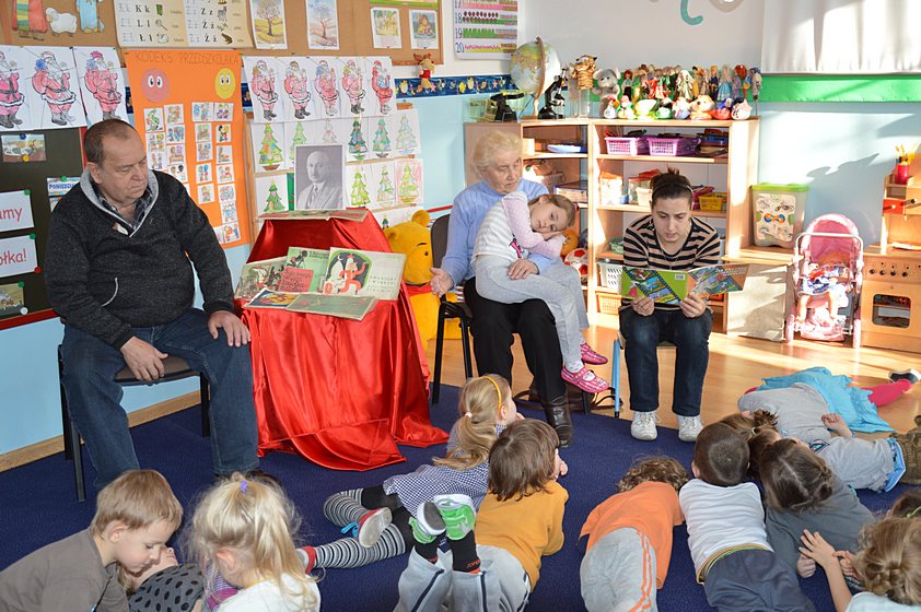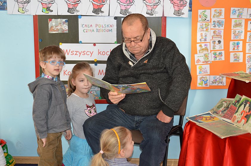 W ramach tej akcji nauczyciele poszczególnych grup codziennie czytają dzieciom ciekawe książki i wspólnie z nimi poznają różnorodną literaturę. Pani Paulina, która jest koordynatorem przedsięwzięcia w naszej placówce, zaprosiła do Promyczka szczególnych gości, którzy wprowadzili nas w świat stworzony przez Kornela Makuszyńskiego, czyli świat ... Koziołka Matołka! Tymi gośćmi były babcie oraz dziadkowie naszych przedszkolaków.