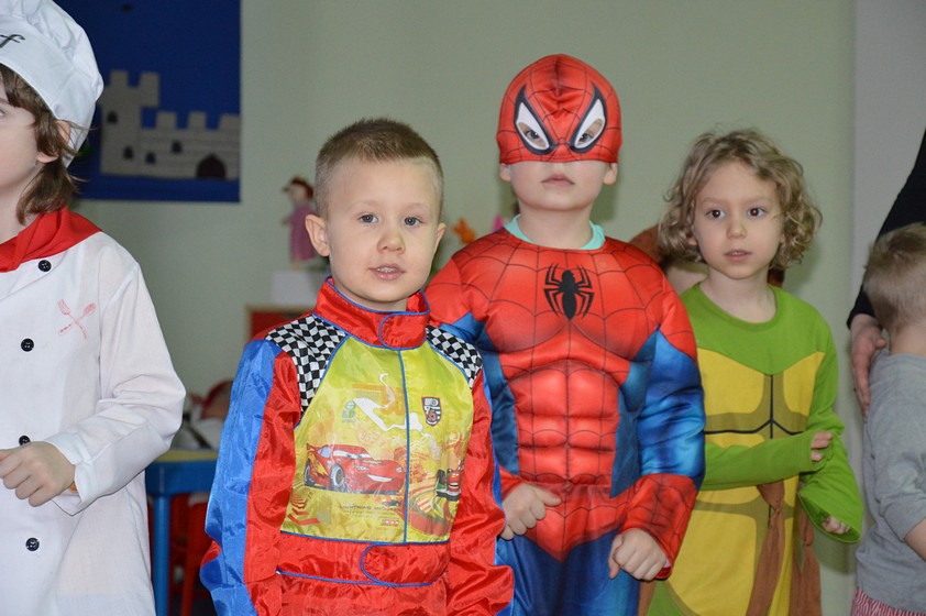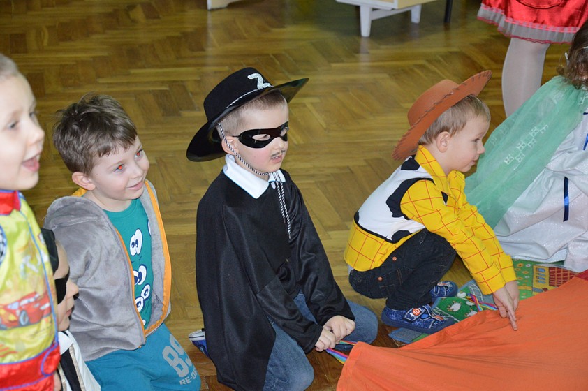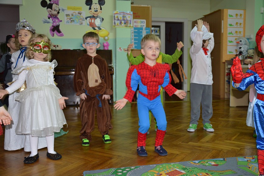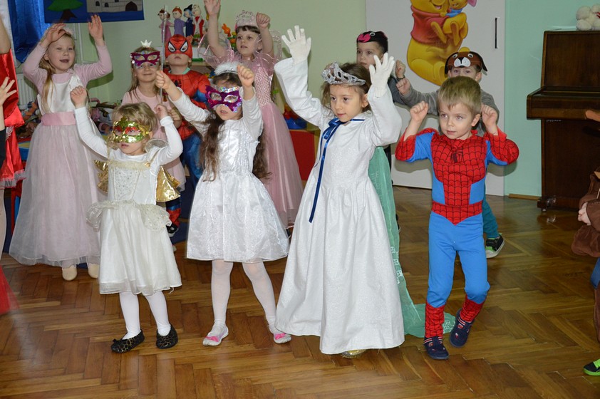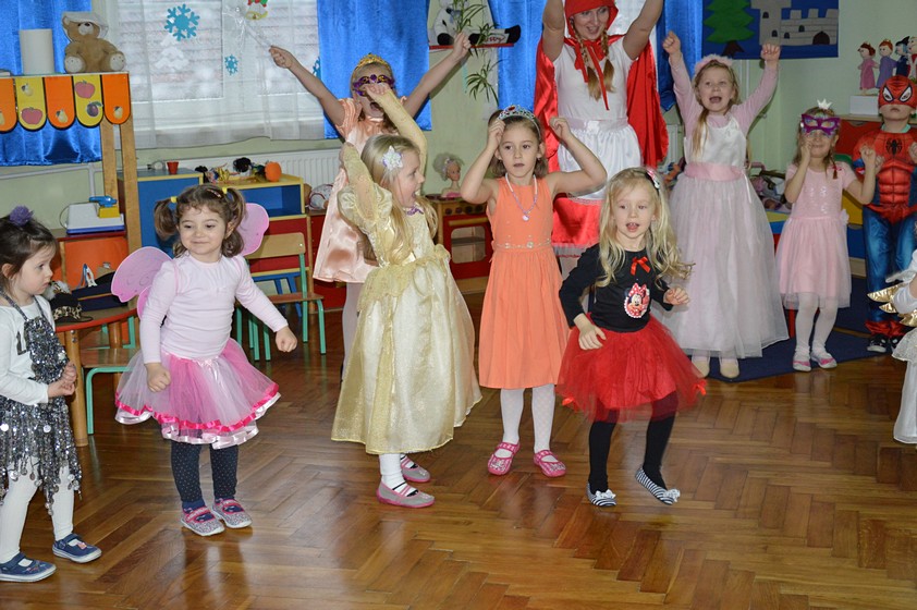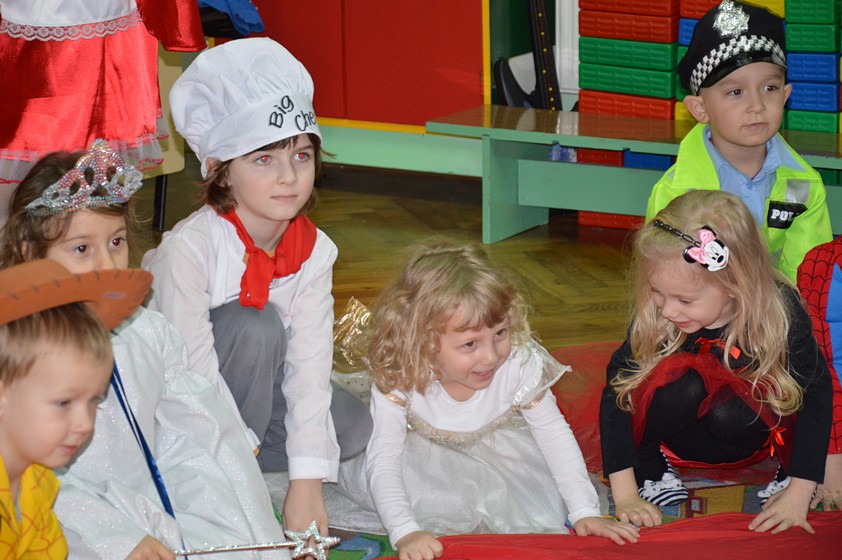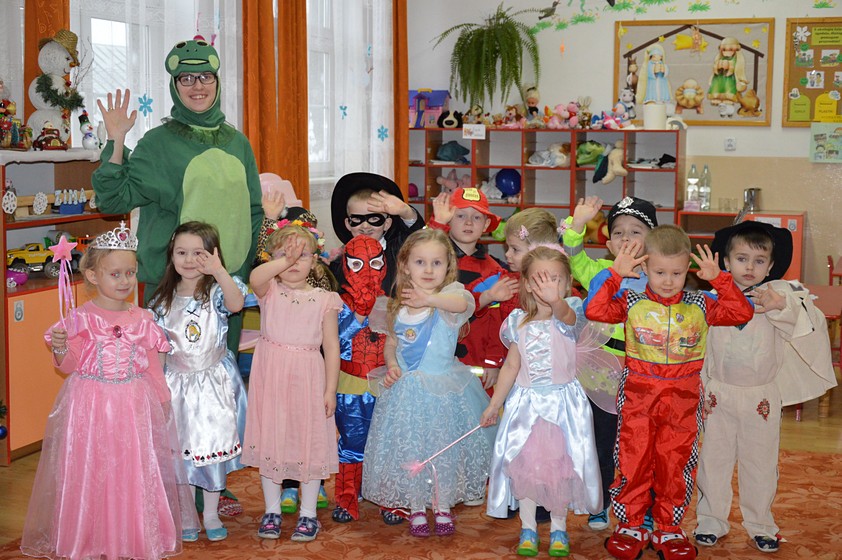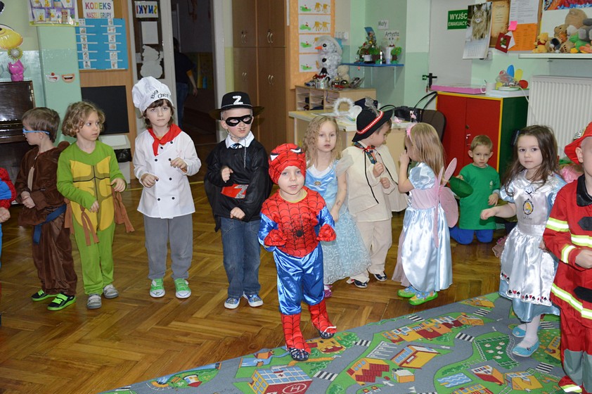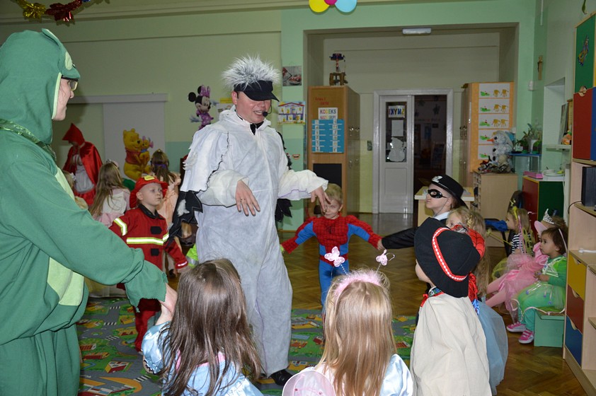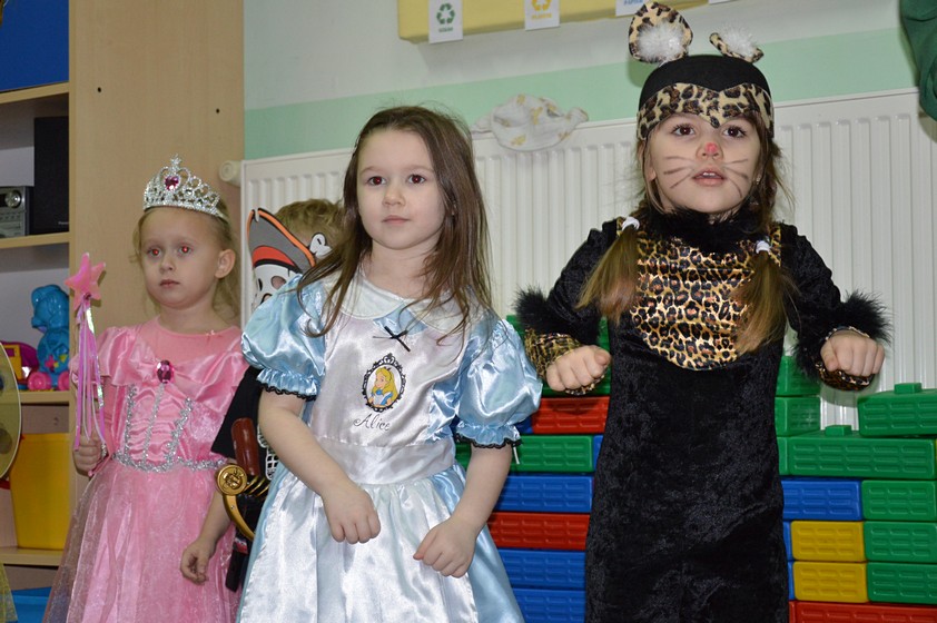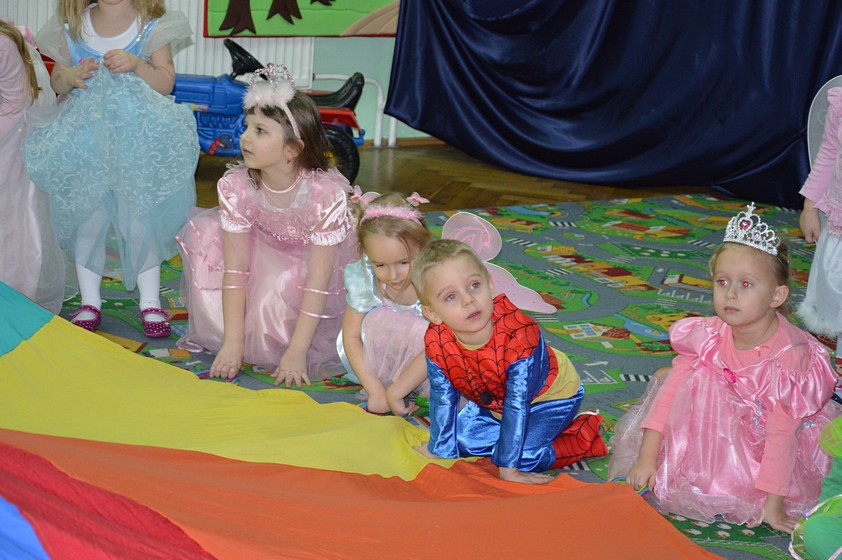 Przedszkolaki od rana czekały na chwilę, gdy będą mogły się przebrać w swoje fantastyczne stroje. Jak zwykle rodzice nie zawiedli – pomysłowość kostiumów i ich różnorodność zadziwiła wszystkich pracowników. Panie nauczycielki, aby nie odbiegać wyglądem od swoich podopiecznych, również zaopatrzyły się w ciekawe przebrania.