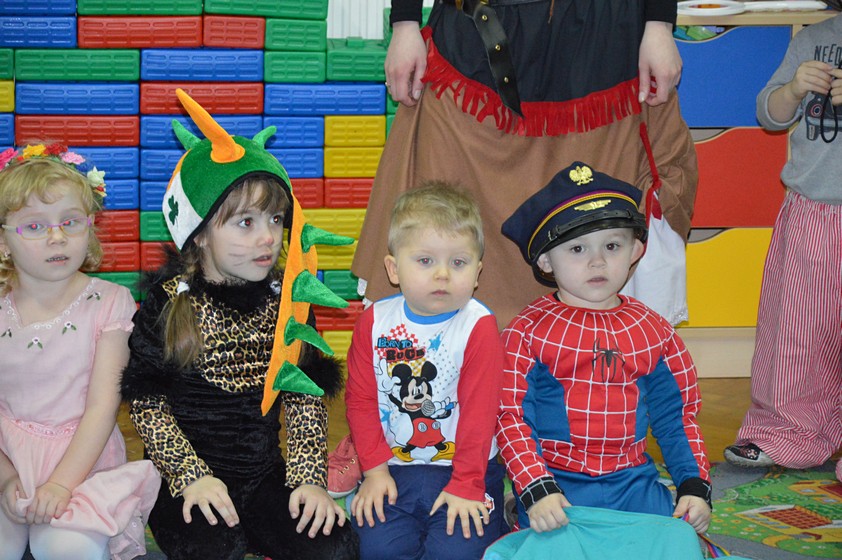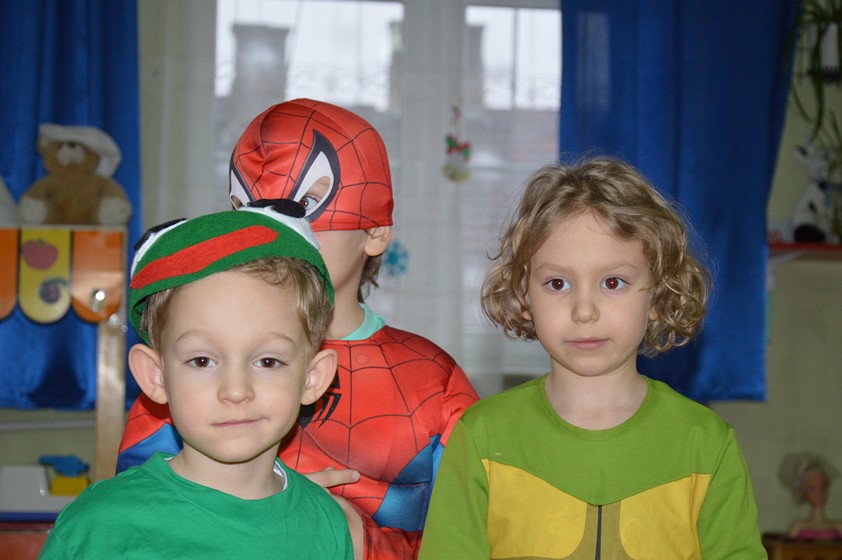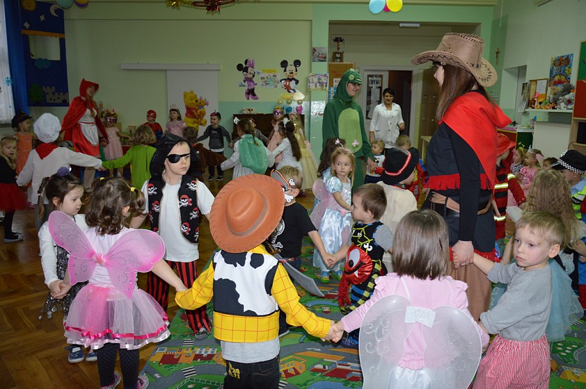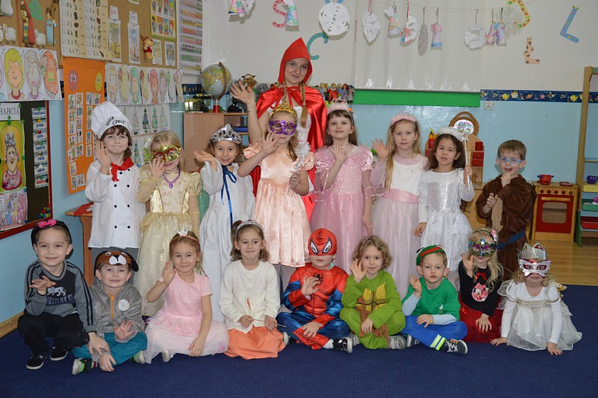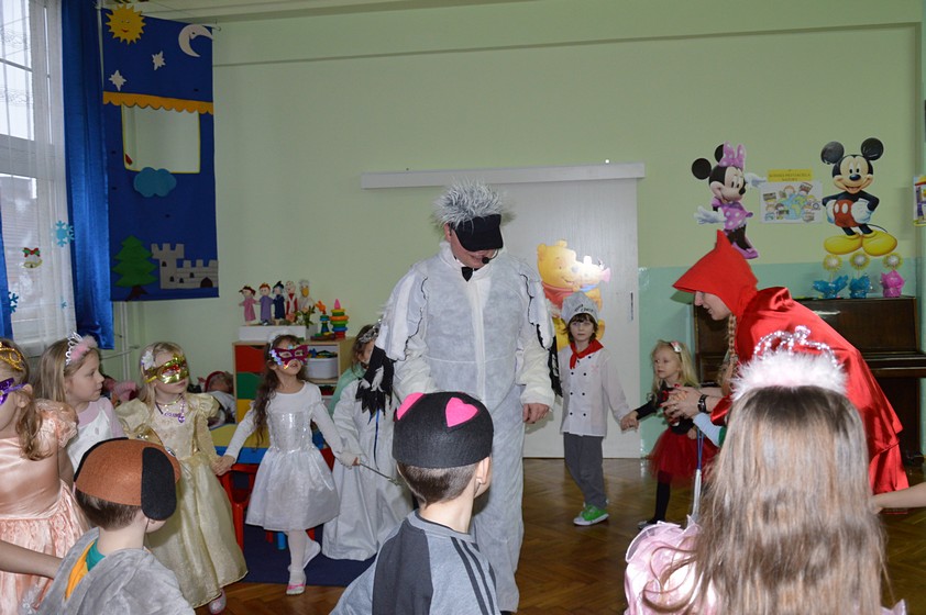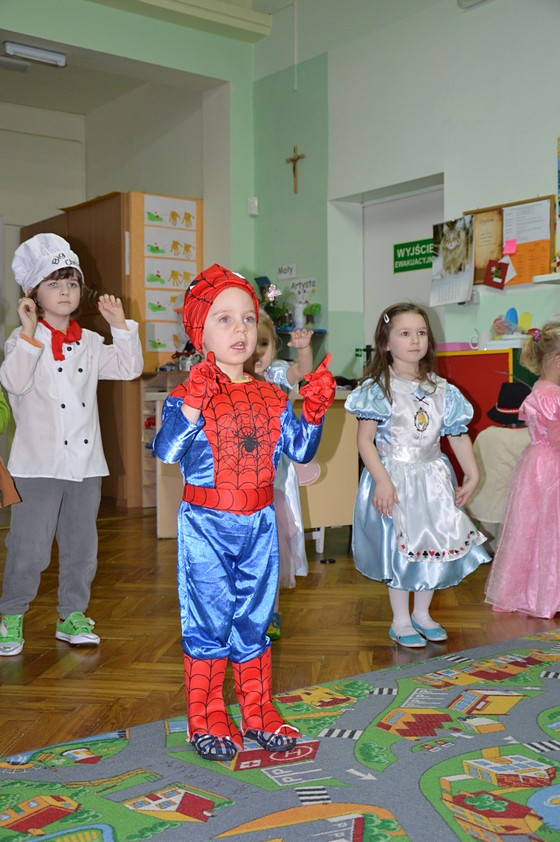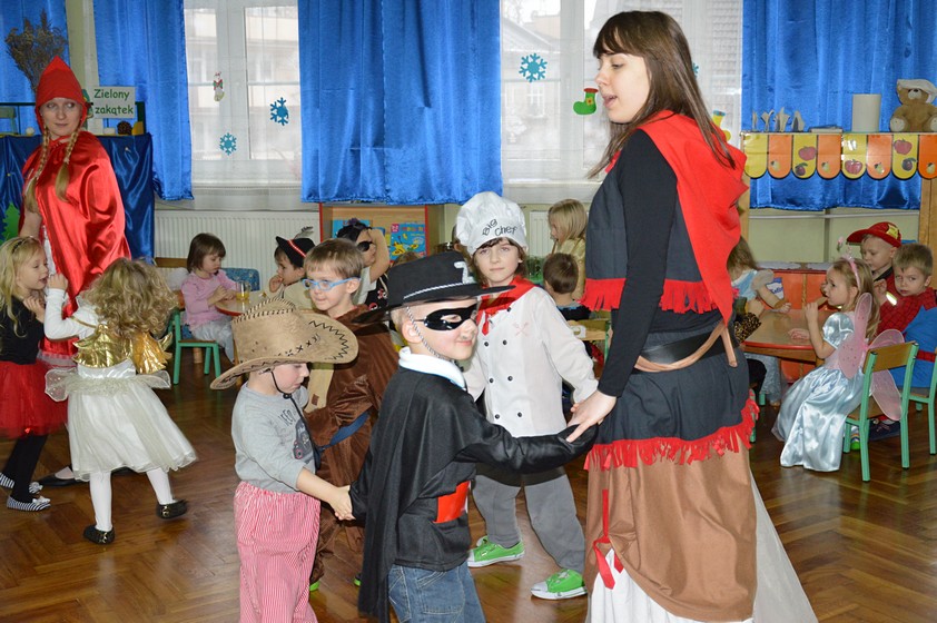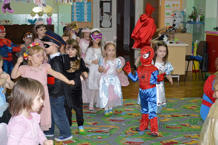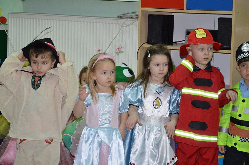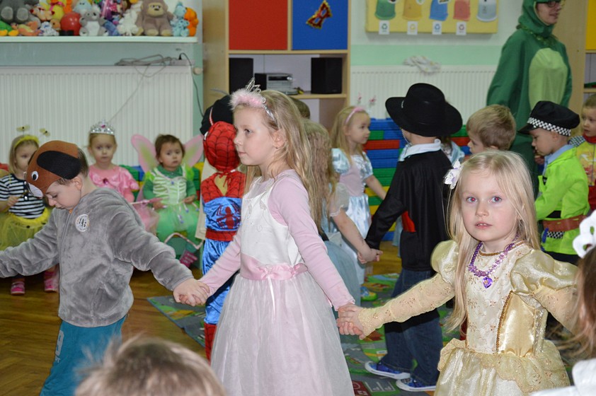 Przedszkolaki od rana czekały na chwilę, gdy będą mogły się przebrać w swoje fantastyczne stroje. Jak zwykle rodzice nie zawiedli – pomysłowość kostiumów i ich różnorodność zadziwiła wszystkich pracowników. Panie nauczycielki, aby nie odbiegać wyglądem od swoich podopiecznych, również zaopatrzyły się w ciekawe przebrania.