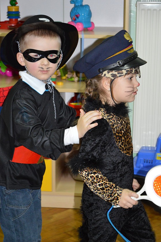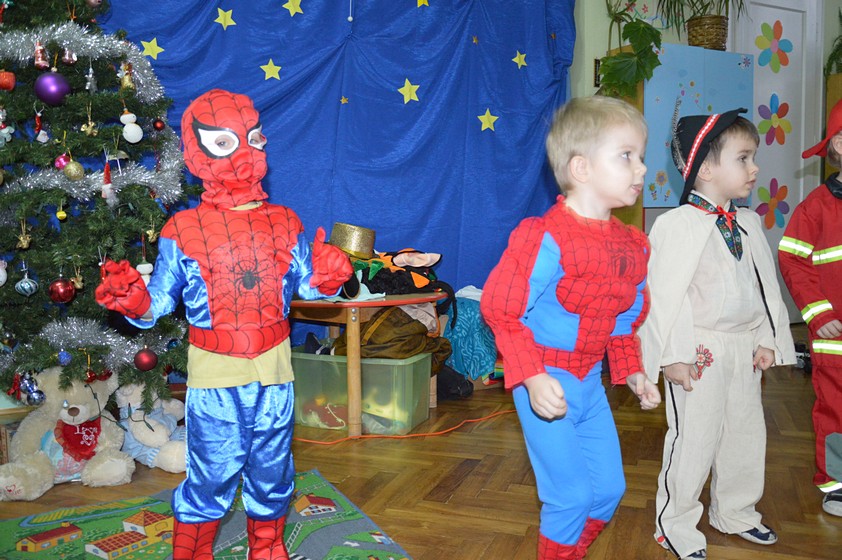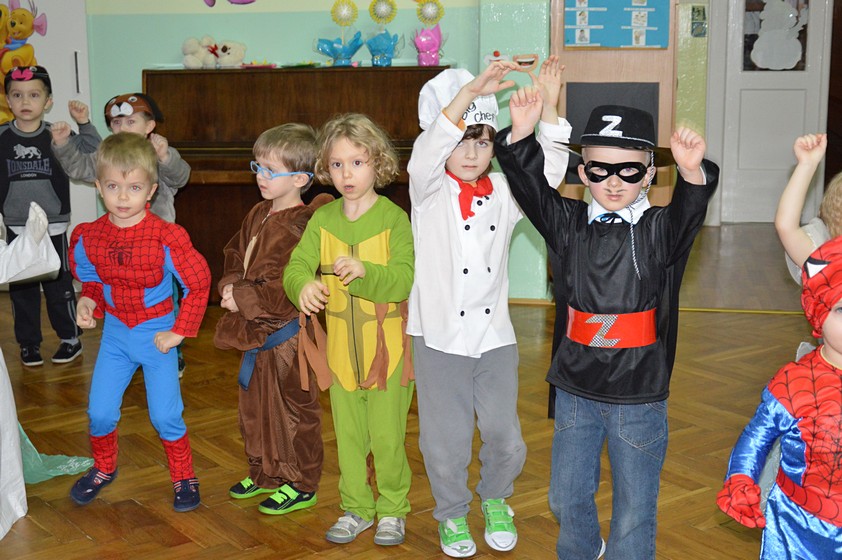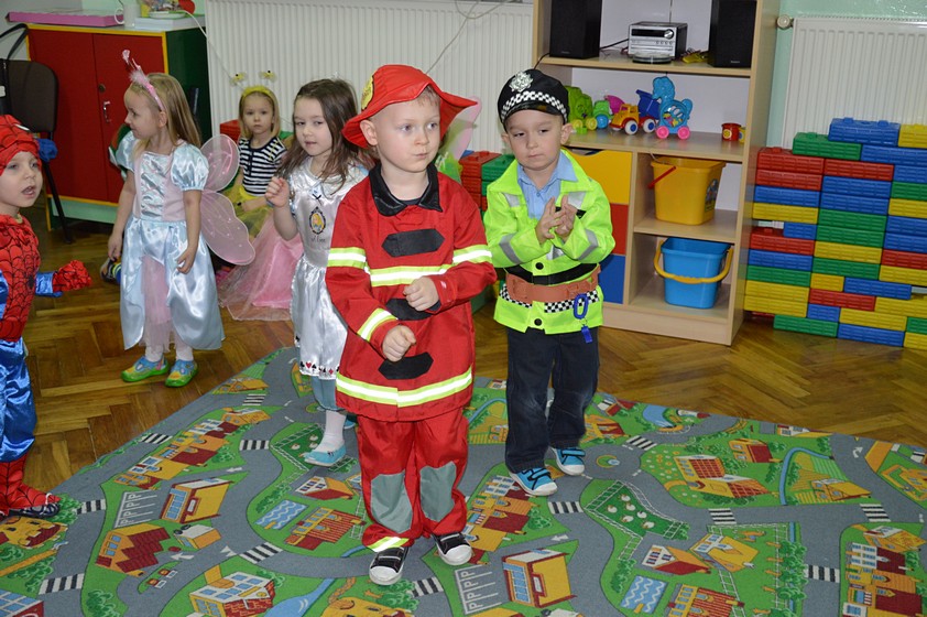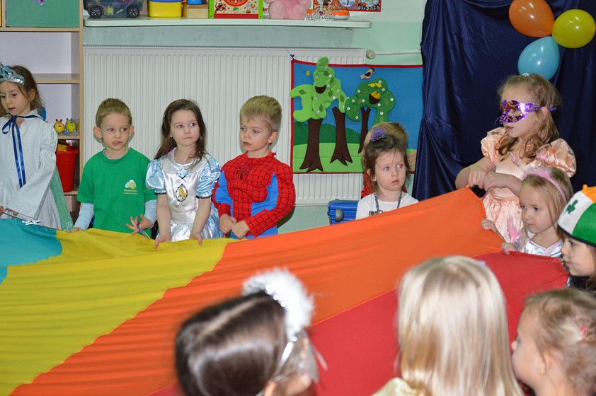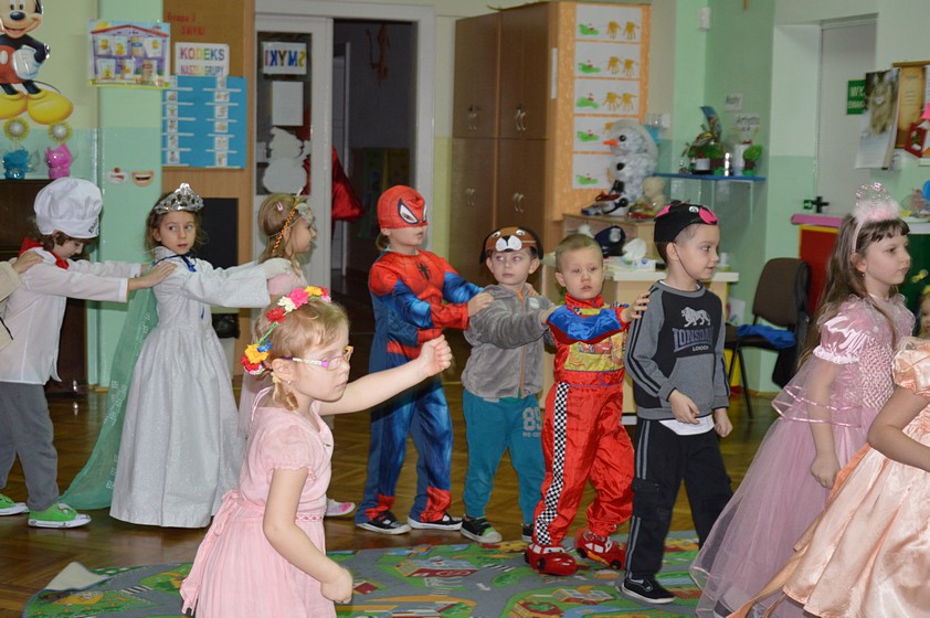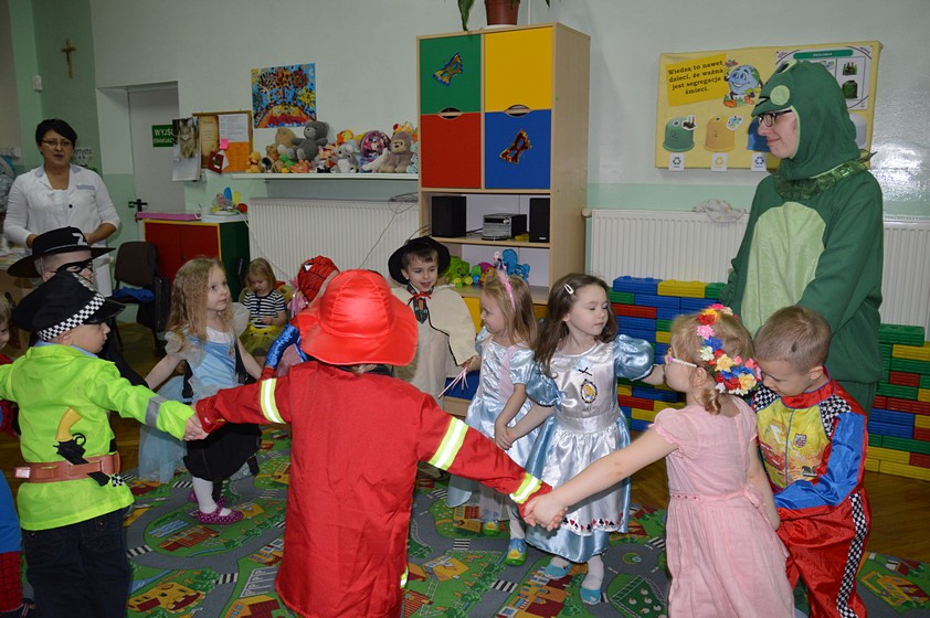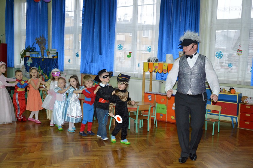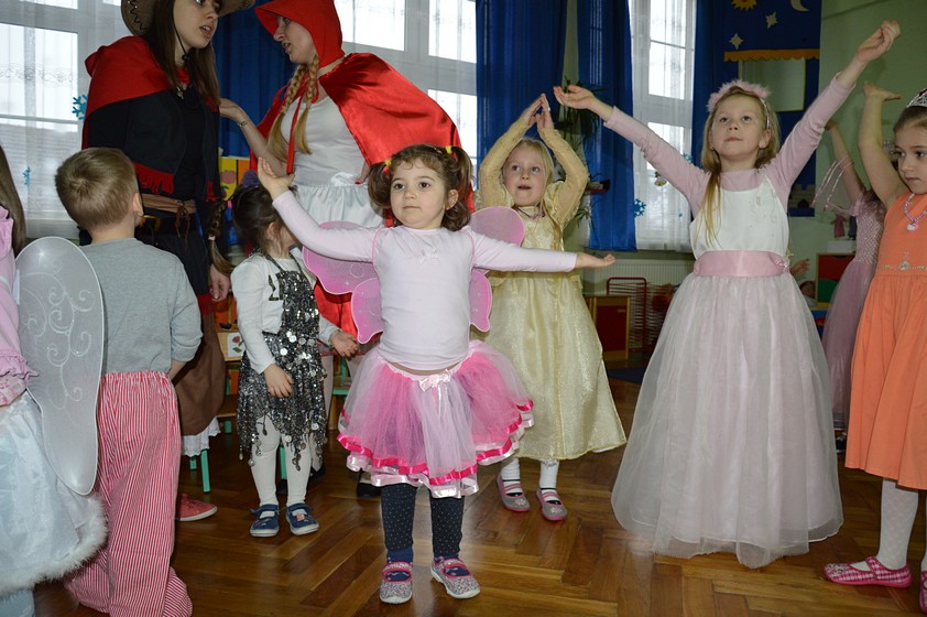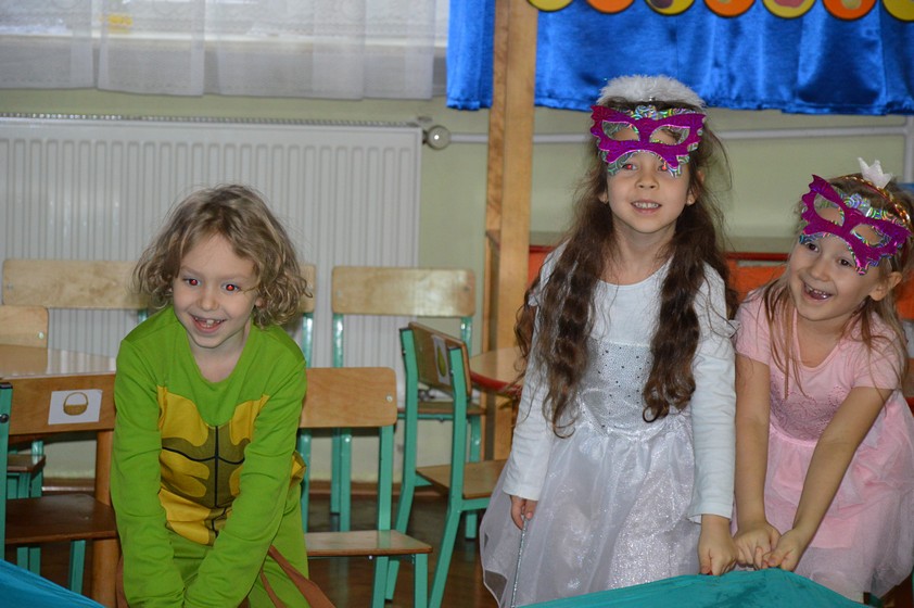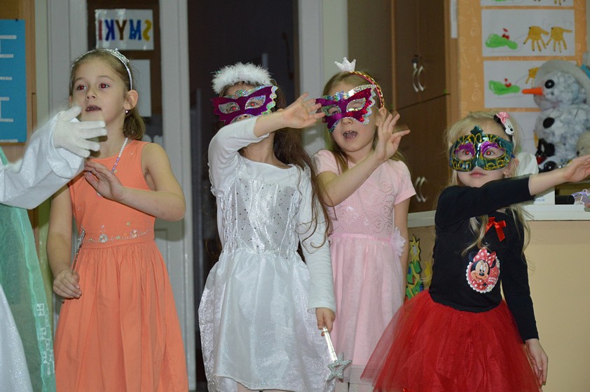 Przedszkolaki od rana czekały na chwilę, gdy będą mogły się przebrać w swoje fantastyczne stroje. Jak zwykle rodzice nie zawiedli – pomysłowość kostiumów i ich różnorodność zadziwiła wszystkich pracowników. Panie nauczycielki, aby nie odbiegać wyglądem od swoich podopiecznych, również zaopatrzyły się w ciekawe przebrania.