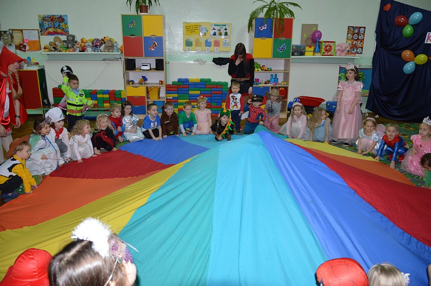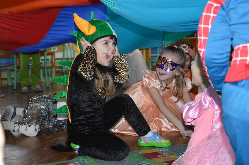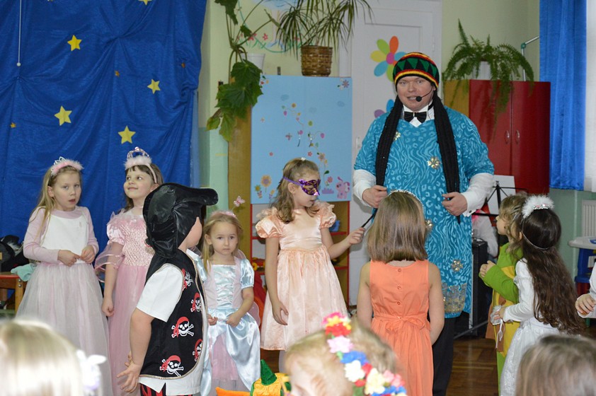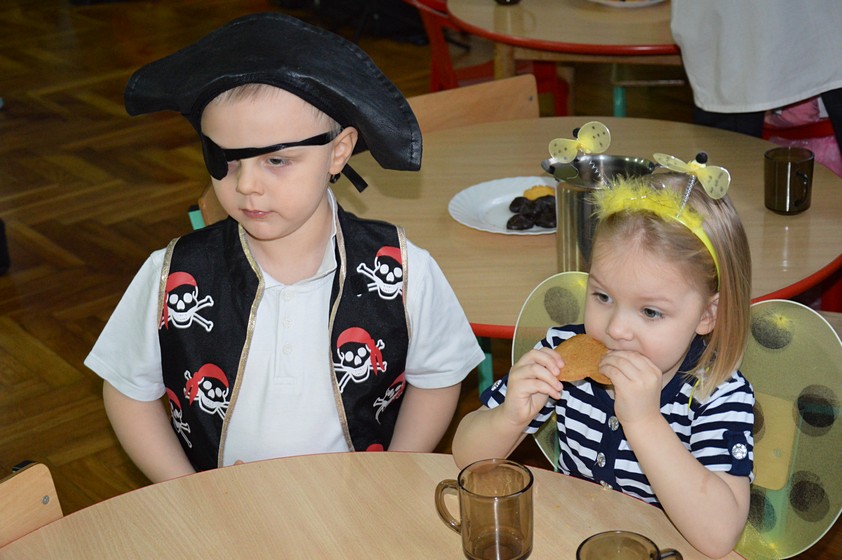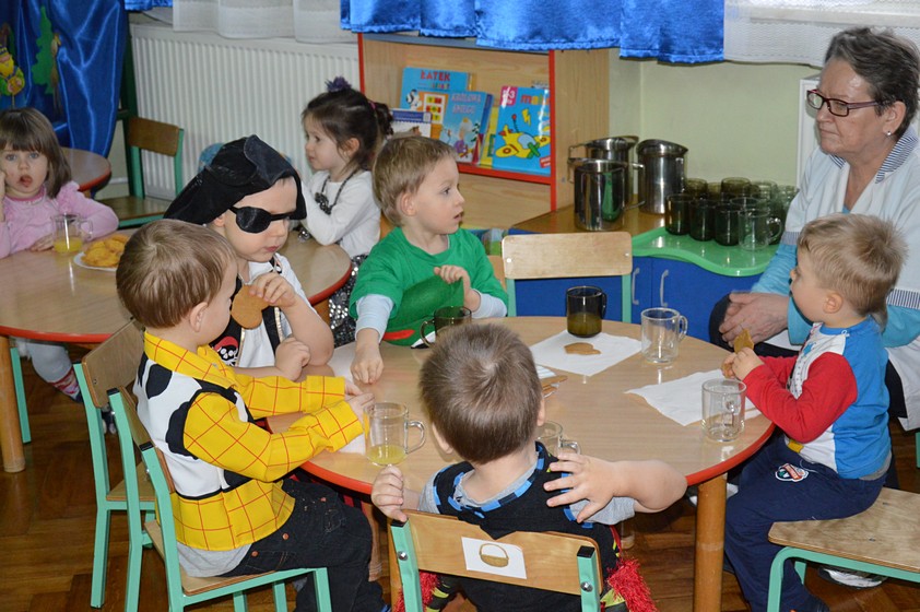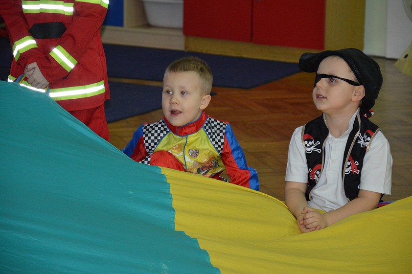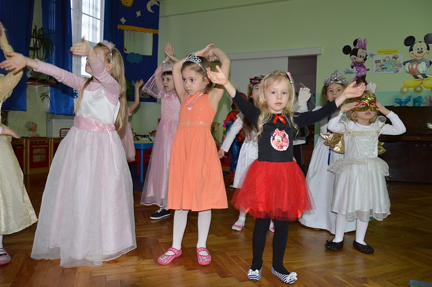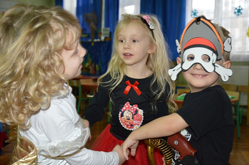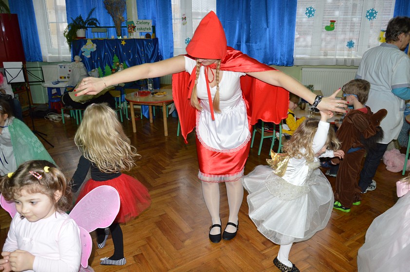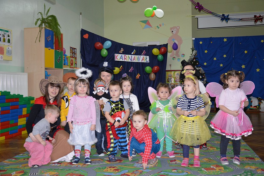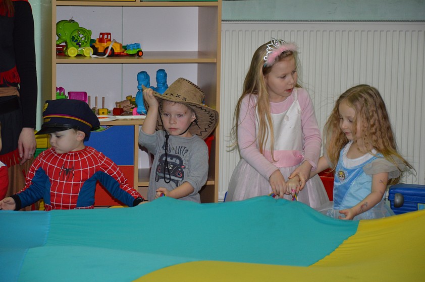 Przedszkolaki od rana czekały na chwilę, gdy będą mogły się przebrać w swoje fantastyczne stroje. Jak zwykle rodzice nie zawiedli – pomysłowość kostiumów i ich różnorodność zadziwiła wszystkich pracowników. Panie nauczycielki, aby nie odbiegać wyglądem od swoich podopiecznych, również zaopatrzyły się w ciekawe przebrania.