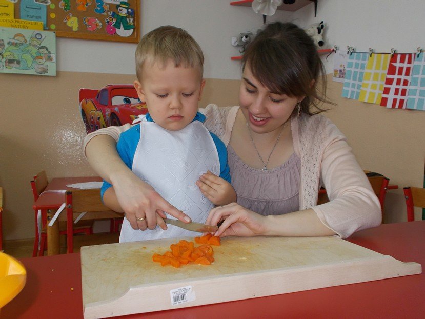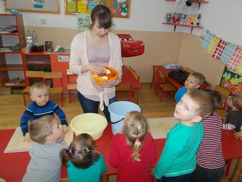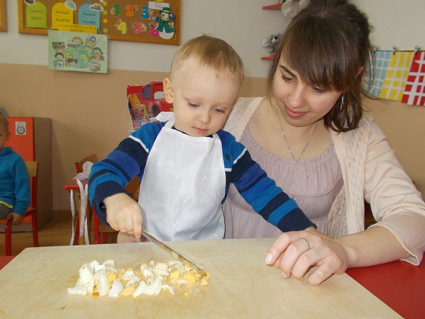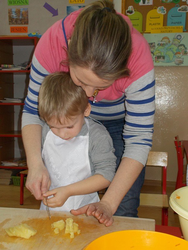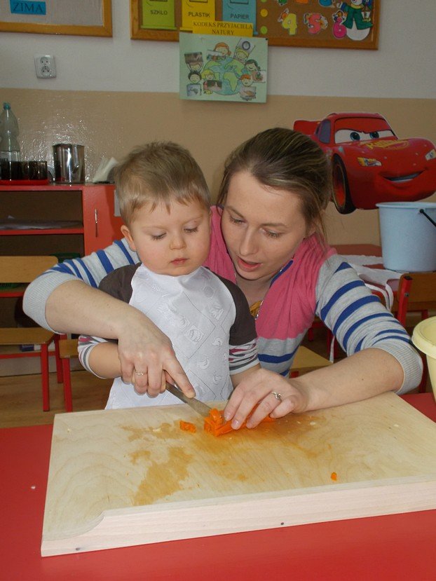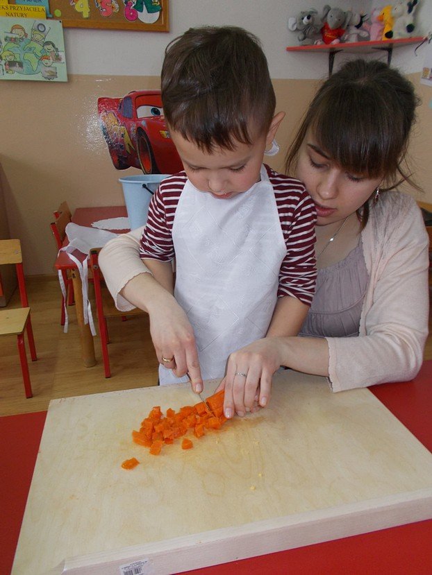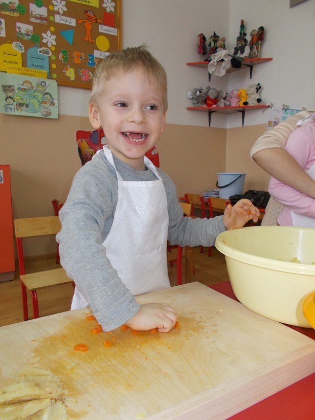 Pierwszy tydzień lutego w grupie Asów i Smyków upłynął pod hasłem „Jestem samodzielny w kuchni”. Dzieci dowiedziały się wielu pożytecznych rzeczy, m.in. na temat właściwego odżywania i bezpieczeństwa pracy z narzędziami kuchennymi.