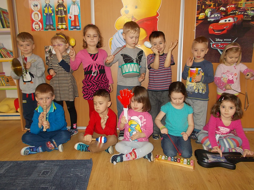 Pierwszy tydzień marca upłynął w naszym "Promyczku" pod znakiem muzyki. Było to związane z tematem "Chciałbym być muzykiem", jaki realizowały poszczególne grupy. W związku z tym panie wychowawczynie przygotowywały dzieciom różne interesujące zajęcia i zabawy związane z utrwalaniem nazw instrumentów, graniem na nich itp. Oczywiście nie odbyło się bez niespodzianki ...