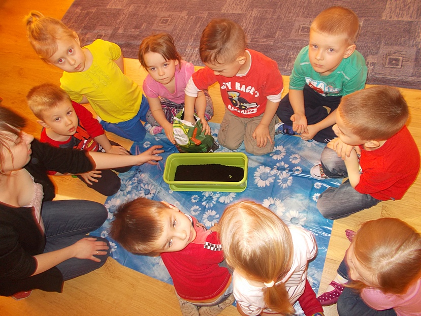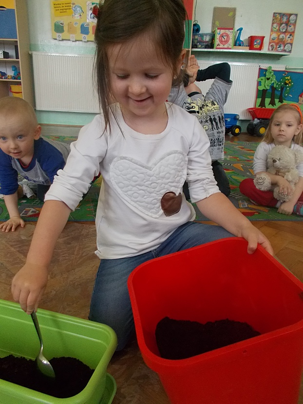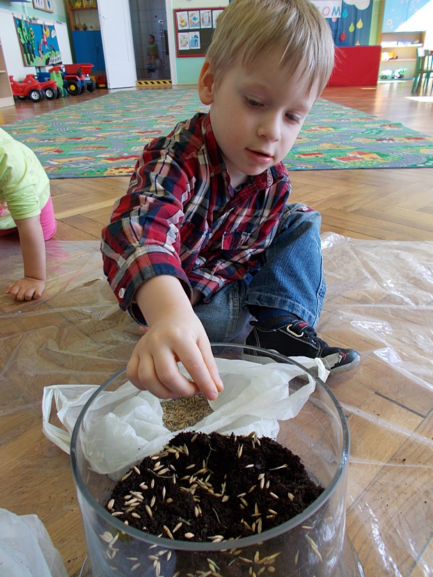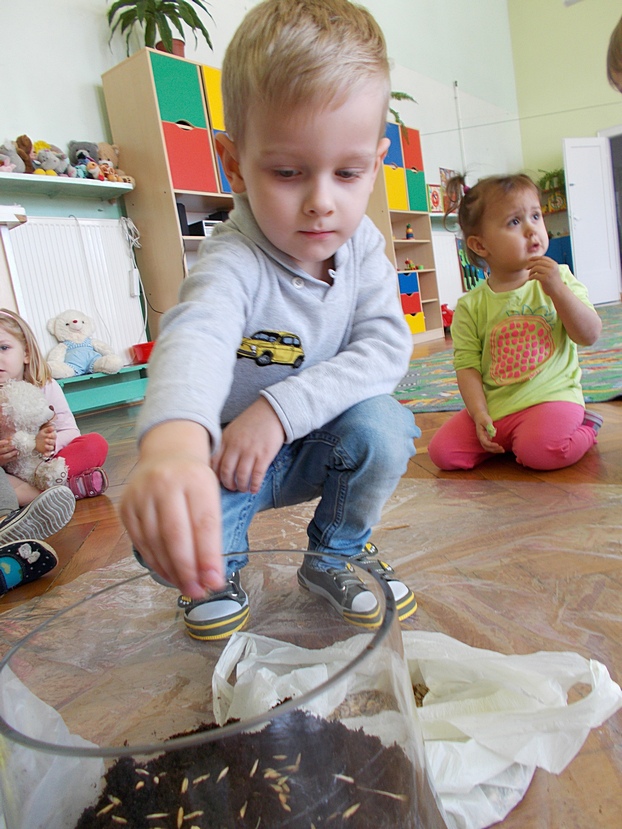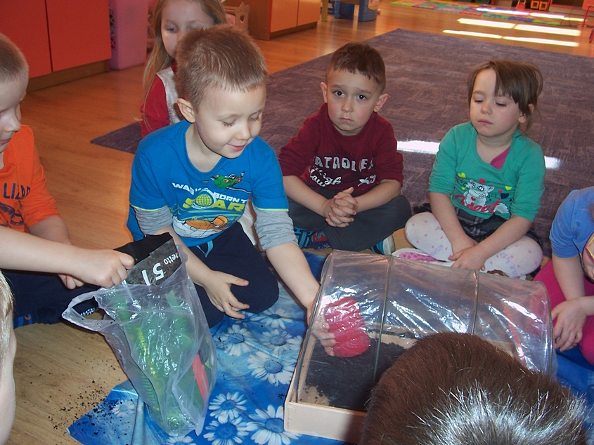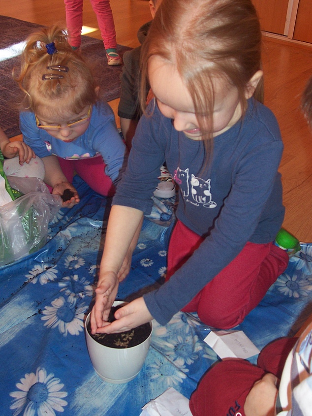 Asy i Smyki wraz z wychowawczyniami ochoczo zabrały się do pracy - przesypywały ziemię, siały nasionka, sadziły cebulki. Dzieci zdają sobie sprawę, że na efekty ich działań będzie trzeba chwilę poczekać, ale gdy pierwsze zielone główki pojawią się w doniczkach, radość będzie ogromna!