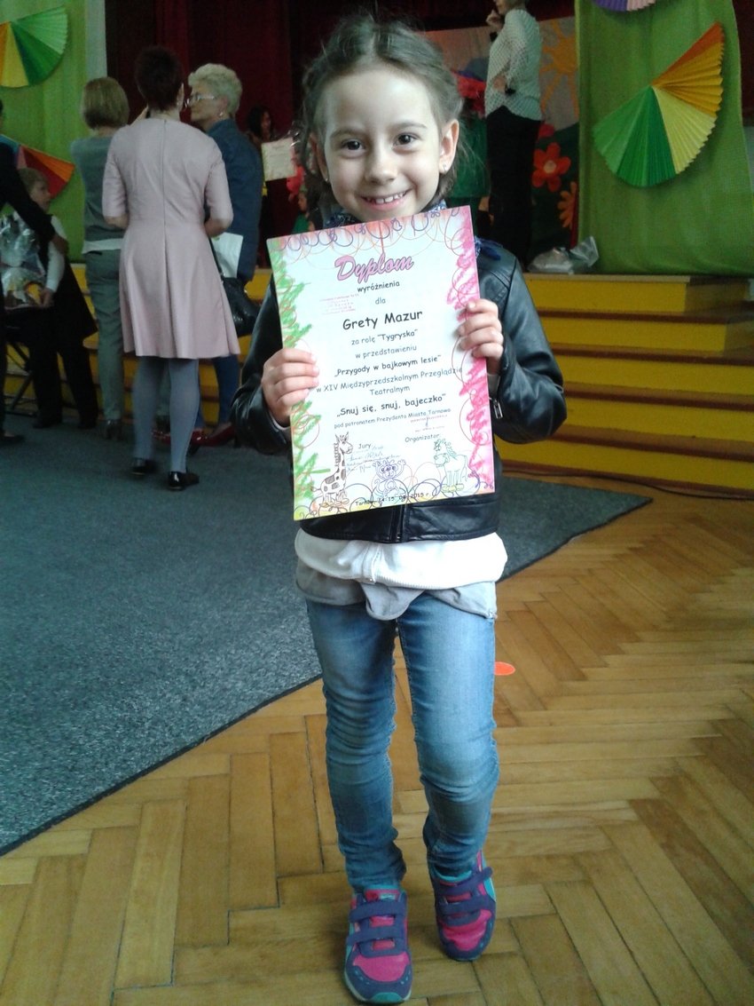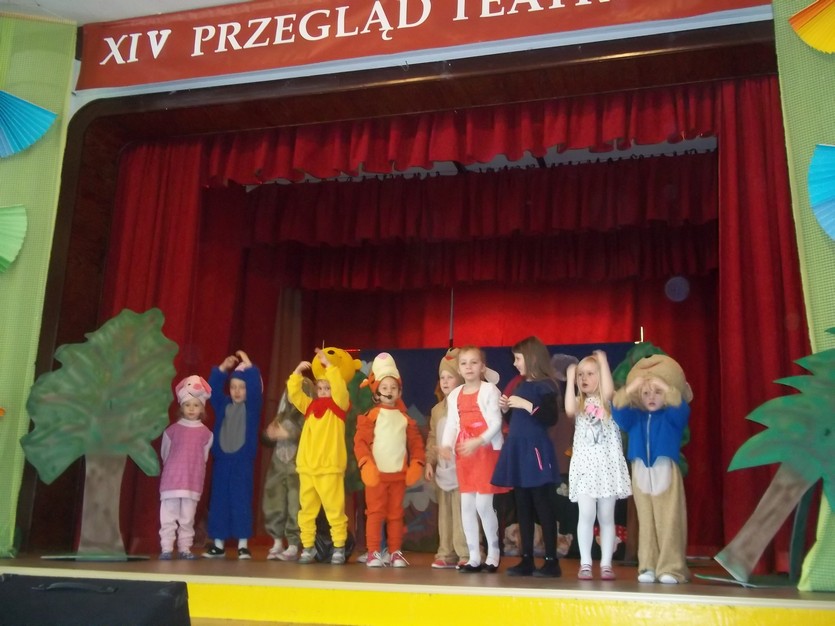 Nasze przedszkolaki zaprezentowały sztukę pt. "Przygody w bajkowym lesie", rozbudzającą zainteresowanie przyrodą i najbliższym otoczeniem. Greta Mazur grająca postać tygryska, została wyróżniona i otrzymała nagrodę.