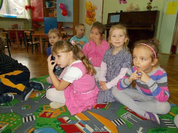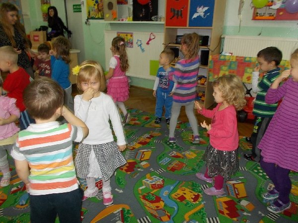 Wróżka przygotowała dla wszystkich przedszkolaków mnóstwo wróżb i zabaw – dzięki niej poznaliśmy tradycje związanych z Andrzejkami, dowiedzieliśmy się nieco o swojej przyszłości. Uroczystość przebiegła w radosnej atmosferze, dzięki piosenkom i zabawom, w których wszyscy bardzo chętnie brali udział.