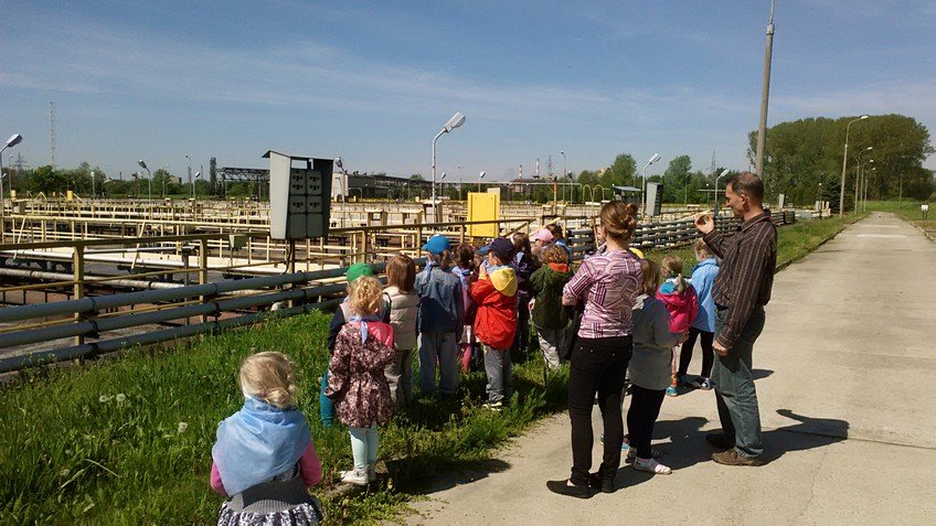 W ramach projektu unijnego w zakładzie została wybudowana ścieżka edukacyjna dla dzieci i młodzieży, na której można znaleźć tablice informacyjne dotyczące kolejnych etapów oczyszczania wody wzbogacone zabawnym obrazkiem i rymowanką. Ponadto pan przewodnik, w sposób ciekawy i zrozumiały dla dzieci, opisywał dokładnie każdy przystanek na trasie oraz dzielnie odpowiadał na pytania przedszkolaków.