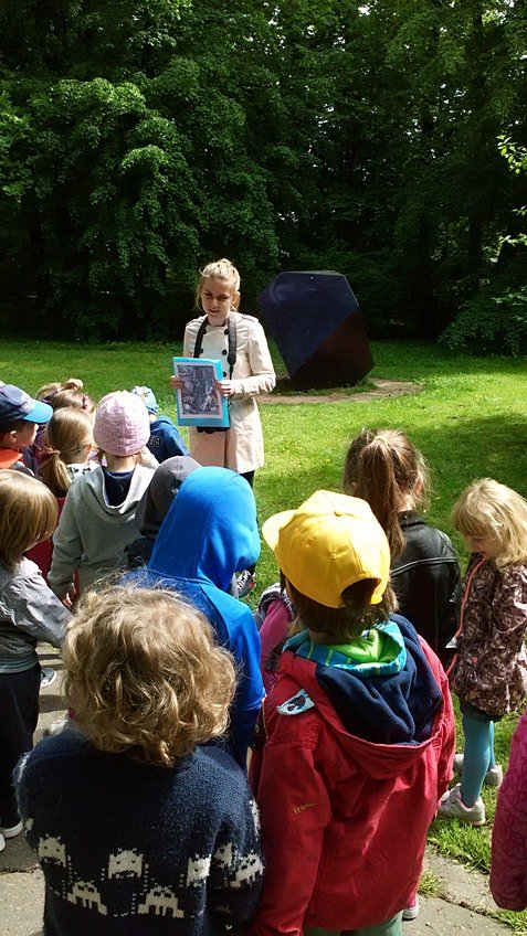 Zuchy, jako najstarsza grupa w przedszkolu, często wychodzą poza placówkę, po to aby poznawać świat i uczyć się o nim poprzez zdobywanie pewnych doświadczeń. Uczestniczą w róznych zajęciach, warsztatach, odwiedzją wiele ciekawych miejsc. Jednym z takich wyjść była wyprawa do Parku Strzeleckiego, gdzie dzieci uczestniczyły w zajęciach z histroii sztuki i warsztatach plastycznych.