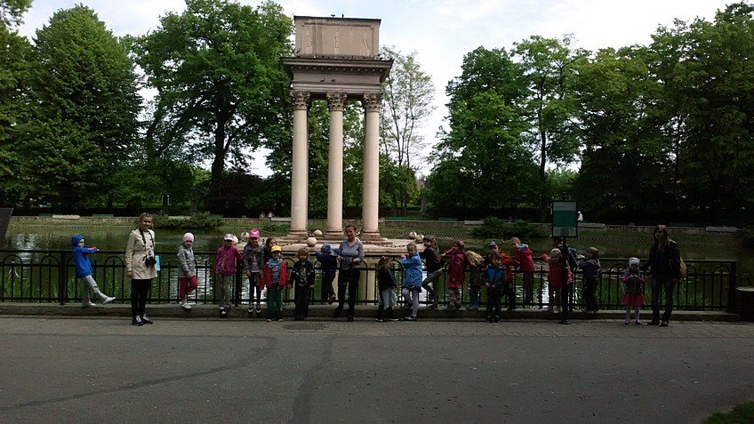 Po Parku oprowadzała nas bardzo sympatyczna Pani Ola, która opowiedział wiele ciekawych historii związanych z najważniejszymi atrakcjami Parku. Idąc śladami sztuki dzieci dowiedziały się, czym jest Mauzoleum J. Bema, dlaczego rzeźba "Melancholia" zmienia kolory oraz co znajduje się w Palacyku Strzeleckim. Nastepnie wzięły udział w warsztatach plastycznych, gdzie z róznych materiałów papierniczych mogły tworzyć obrazki przedstawiające najciekawsze, według dzieci, miejsca w Parku Strzeleckim. Oczywiście w tym dniu nie mogliśmy również ominąć ulubionego placu zabaw, który stał się najlepszym zwieńczeniem naszej wycieczki.