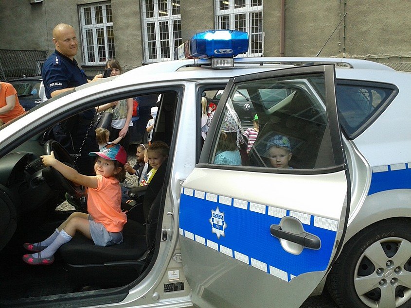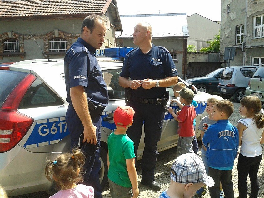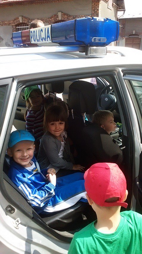 Nasi podopieczni dowiedzieli się jak należy zachowywać się w chwilach zagrożenia oraz co robić, aby takich niebezpiecznych sytuacji w czasie wolnym uniknąć. Ponadto Panowie Policjanci pozwolili obejrzeć dzieciom z bliska samochód policyjny i choć przez chwile poczuć się jak prawdziwy policjant. Musimy przyznać, że było to bardzo emocjonujące spotkanie i oby ta lekcja pozostała w pamięci dzieci na bardzo długo.