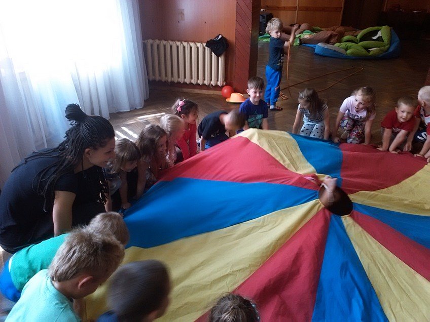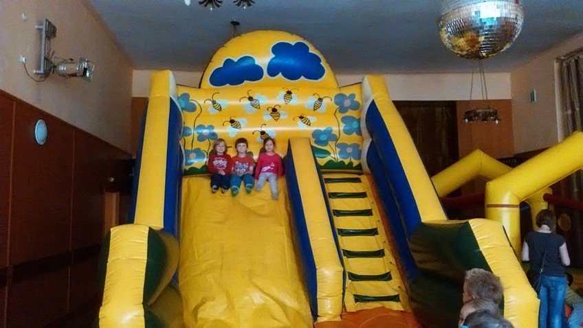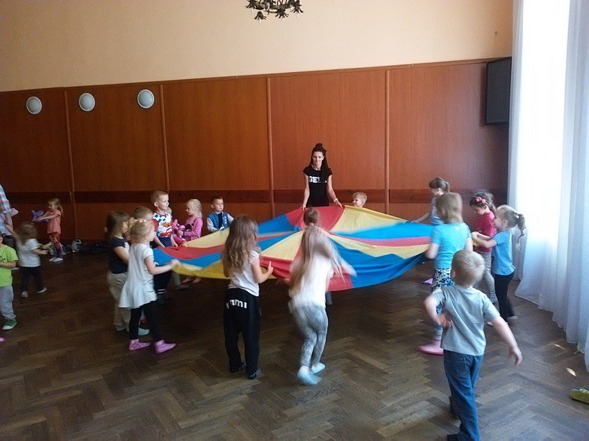 Dzieci mogły zjeżdżać na dmuchanych zjeżdżalniach, skakać na trampolinach, pływać w suchym basenie i tańczyć do woli. Ponadto brały udział w zabawach z chustą animacyjną i różnych zawodach sportowych. Otrzymały również piękne balonowe stworki, które były zwieńczeniem dnia pełnego radości i szaleństwa.