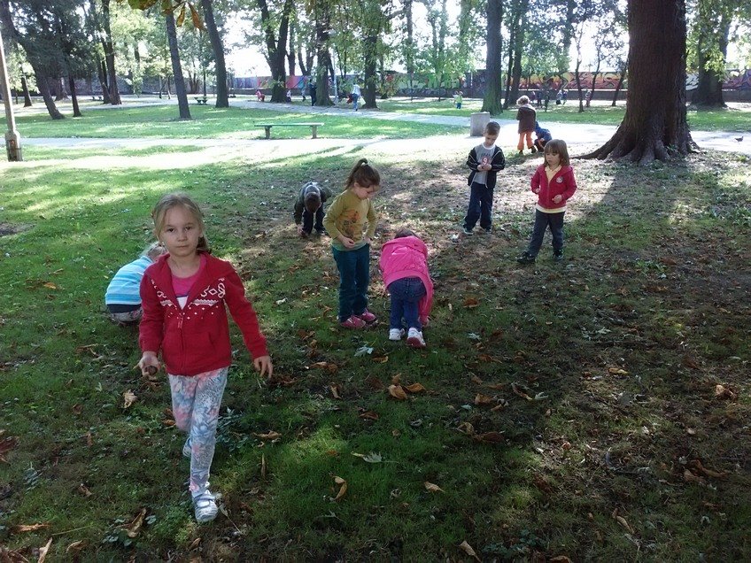 Obserwacja przyrody okazała się naprawdę pouczająca, jednak największą frajdę sprawiło dzieciom zbieranie kasztanów. Prześcigały się w ilości zbieranych okazów i ich wielkości. Na prawdę Zuchy stanęły na wysokości zadania i zebrały ogromną ilość tych jesiennych skarbów, z których będą tworzyły różne cudeńka w przedszkolu.