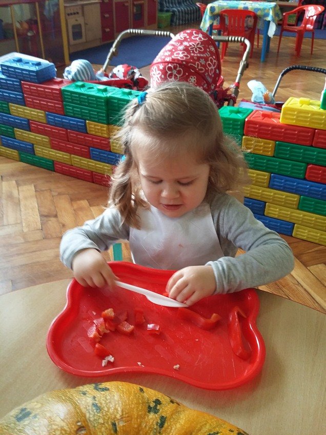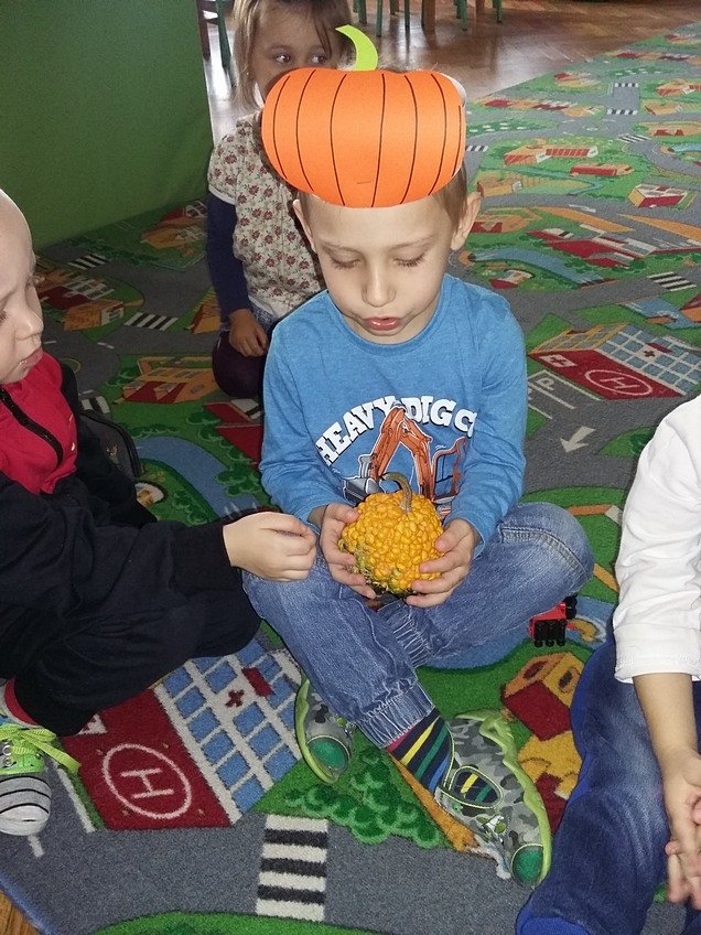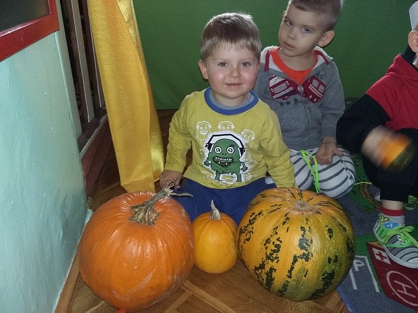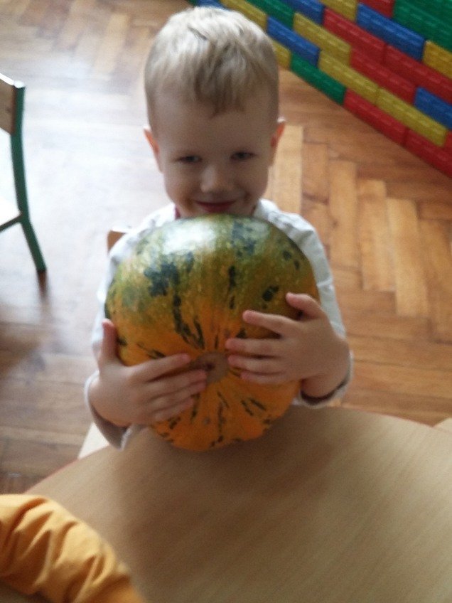 Przedszkolaki z grupy Smyki poznały właściwości dyni, jej zastosowanie oraz dowiedziały się wielu ciekawostek na jej temat. Nie mogło zabraknąć zabaw ruchowych z dynią w roli głównej. Smyki wzięły udział w dyniowym slalomie, doskonaląc swoją sprawność fizyczną. Zwieńczeniem święta dyni była własnoręcznie przygotowana dyniowa sałatka.