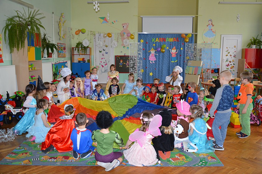 3 lutego w naszym przedszkolu odbył się Bal Karnawałowy. Sala zapełniła się kolorowymi, pięknymi strojami i uśmiechniętymi buziami. Tym razem zabawę poprowadziły wychowawczynie grupy najmłodszej pani Kinga oraz pani Paulina.
