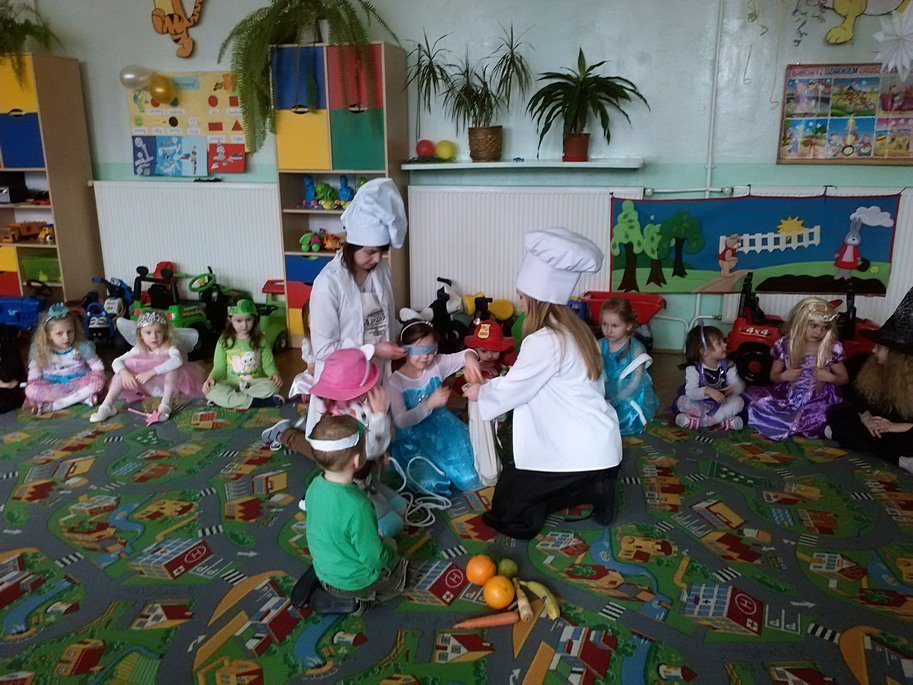 Tematem przewodnim naszego karnawału było zdrowe odżywianie a celem kształtowanie zdrowego oraz aktywnego trybu życia, dlatego też panie wcieliły się w role kucharzy poszukujących informacji na ten temat. W tym celu przygotowały różne zadania aby "Promyczki" pomogły zapełnić potrzebnymi wiadomościami książkę kucharską.