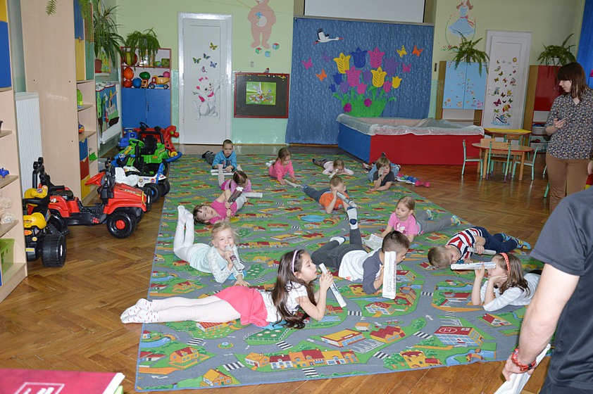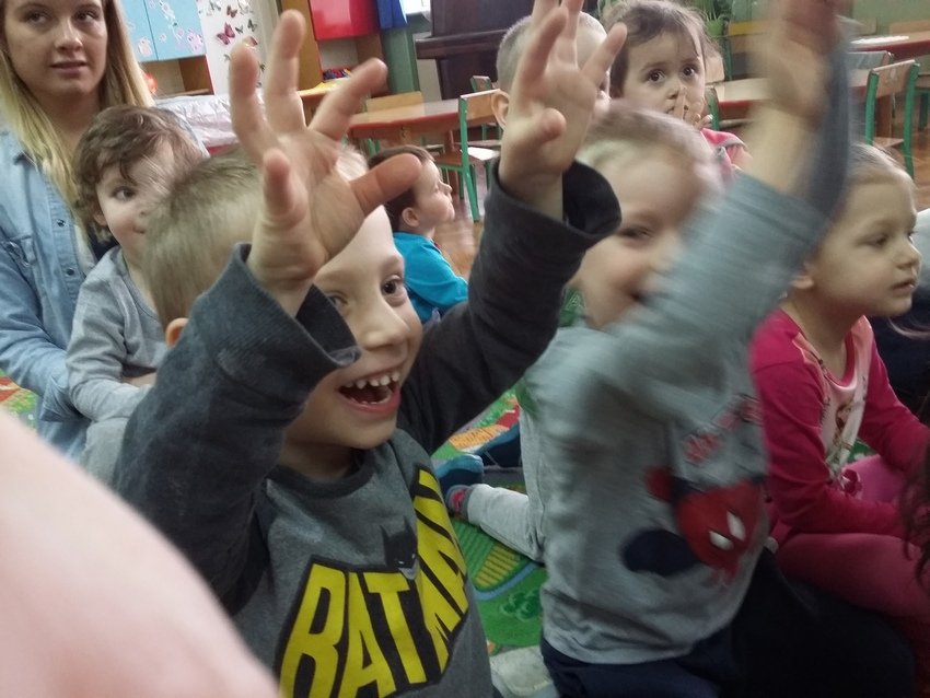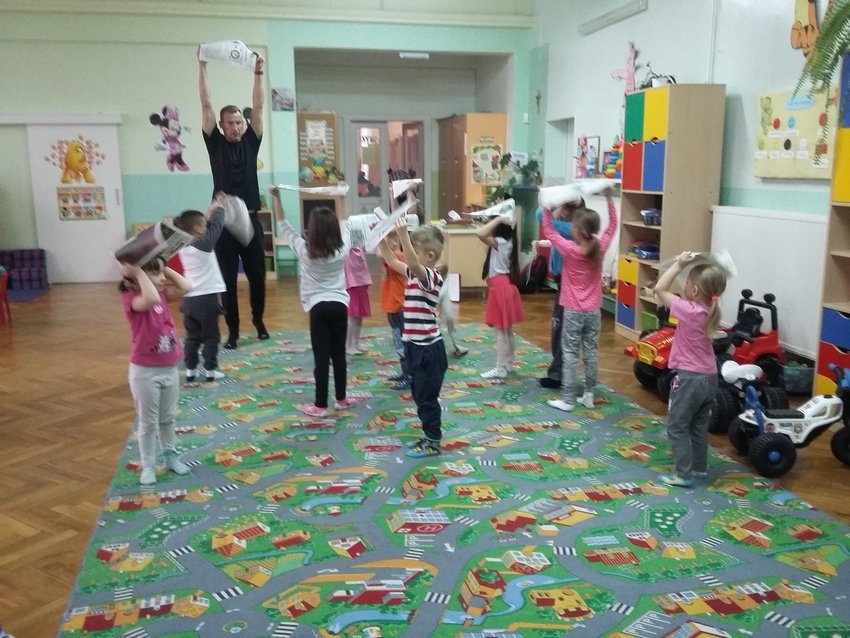 Dni Otwarte w Promyczku rozpoczęliśmy od zabawy prowadzonej przez zaproszonych gości. Całe przedszkole wypełniło się śmiechem zadowolonych przedszkolaków, którzy chętnie bawili się i tańczyli.