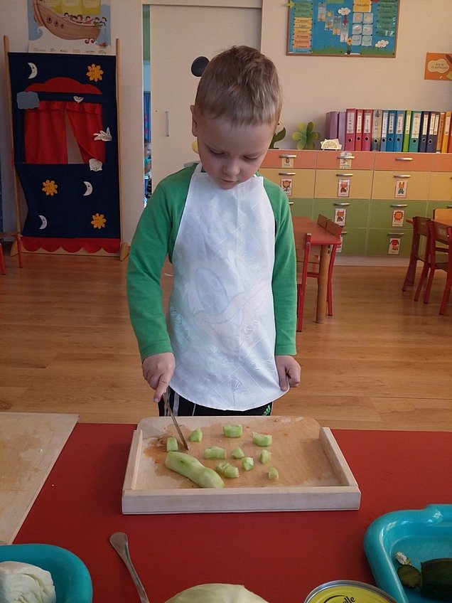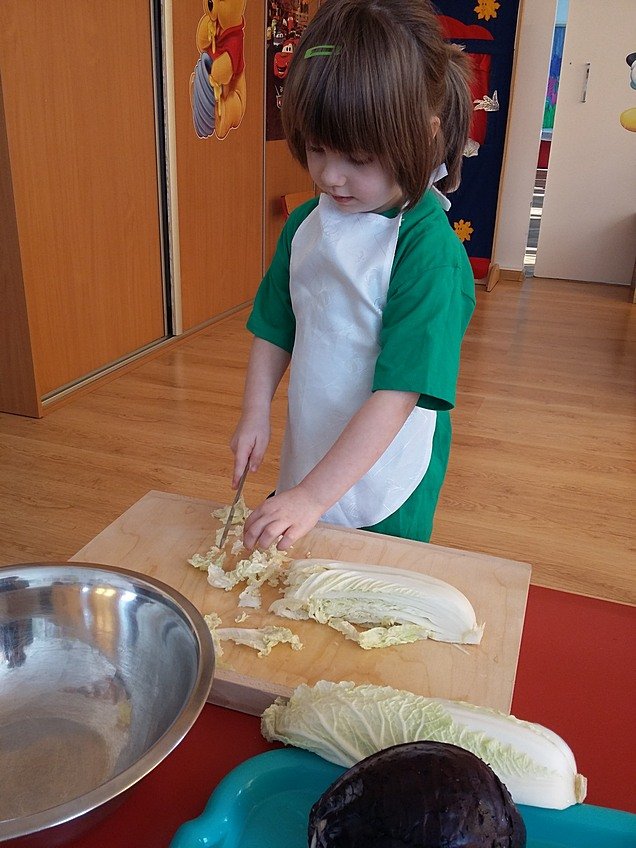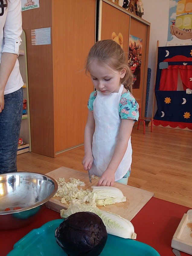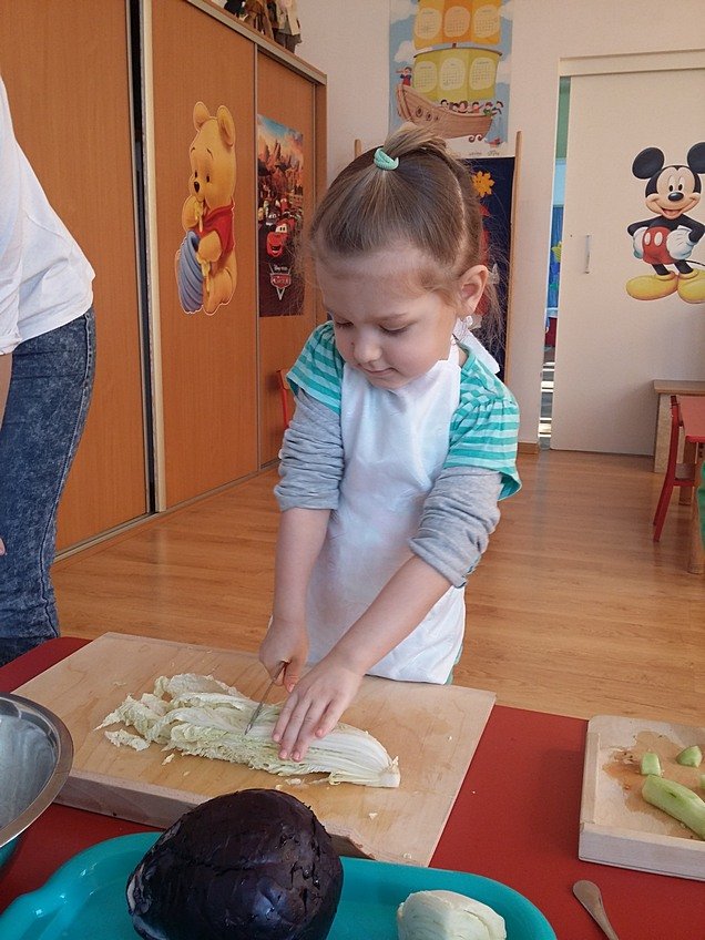 Asy obchodziły w ostatnim czasie Dzień Kapusty. Dzieci dowiedziały się wielu rzeczy na jej temat, m.in. poznały zalety zdrowotne tego wspaniałego warzywa. Zwieńczeniem dnia było przygotowanie pysznej i wartościowej surówki.