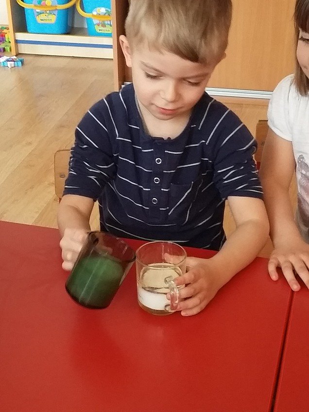 W grupie Asów nie można się nudzić, w kwietniowe popołudnie dzieci wykonały doświadczenia z gęstością. Asy przekonały się jakimi cechami mogą różnić się substancje.