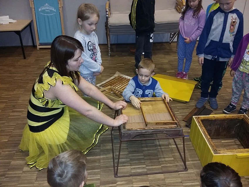 W trakcie zwiedzania obejrzeliśmy bajeczkę o Koziołku Matołku w przytulnej salce kinowej umieszczonej w olbrzymiej komodzie. Dzieci uczestniczyły w warsztatach pt: „Tajemnica łyżeczki miodu”. Zapoznały się z produkcją miodu przez pszczoły oraz z pracą pszczelarza. Prawdziwą ciekawostką okazała się być informacja, iż pszczoła w trakcie swojego życia produkuje tylko jedną łyżeczkę miodu!