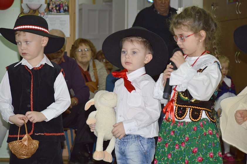 We wtorkowe przedpołudni wszyscy zgromadzili się w sali grupy I Smyki, aby podziwiać występy swoich wnuków. Dzieci spisały się znakomicie - spotkanie przebiegło w atmosferze pełnej wzruszeń i radości. Na twarzach przybyłych gości malowała się duma z wspaniałych wnuków.