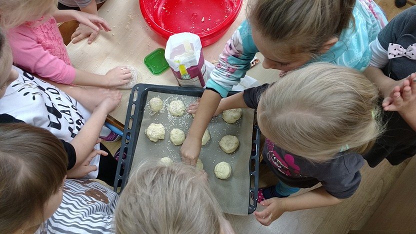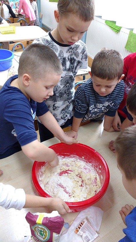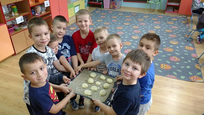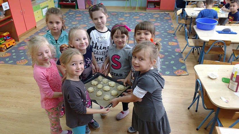 Zaprosiła ich do wspólnego pieczenia bułeczek! Okazało się, że sztuka wypieku nie jest Zuchom obca, dlatego zarówno dziewczęta, jak i chłopcy świetnie poradzili sobie z tym zadaniem. Pyszne bułeczki pachniały w całym przedszkolu!