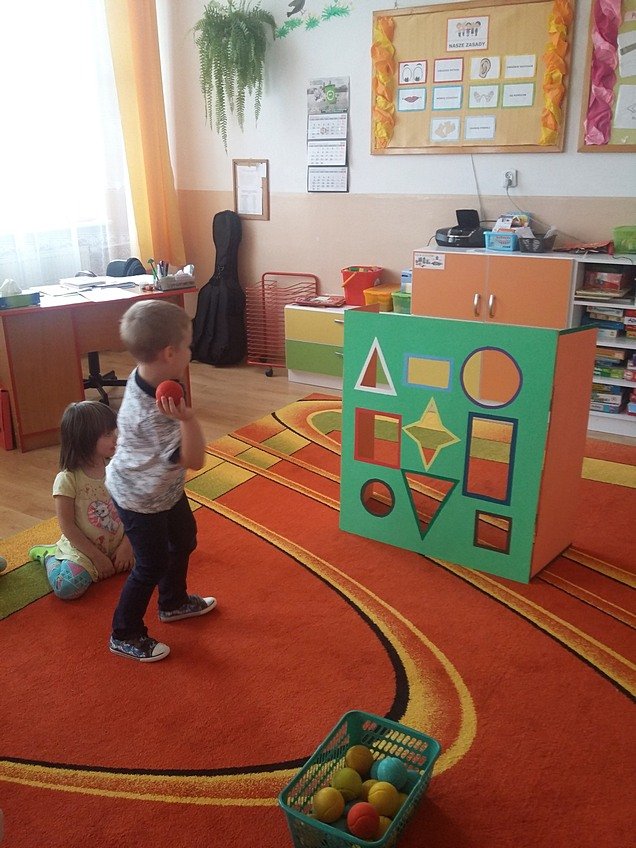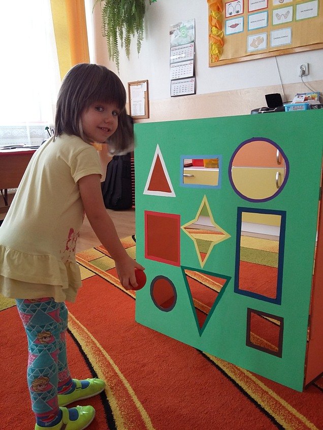 Jak powszechnie wiadomo dobra zabawa jest najlepszym sposobem do nauki. Plansza, która powstała w przedszkolu pozwoliła Asom na utrwalenie poznanych już figur geometrycznych oraz nazw kolorów.