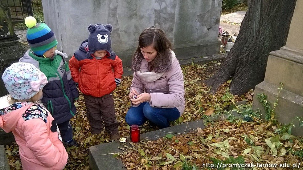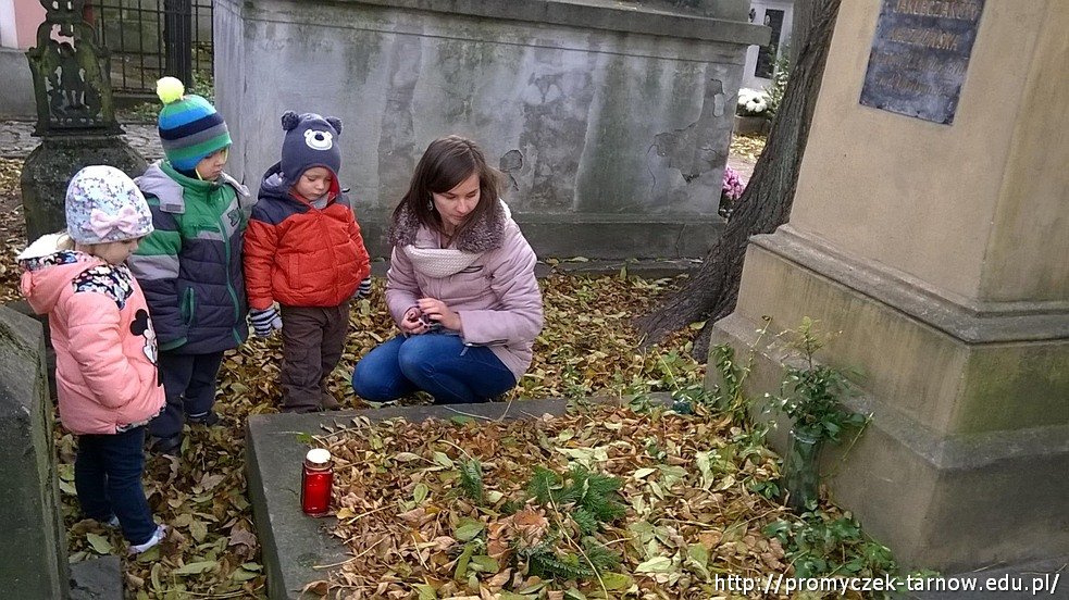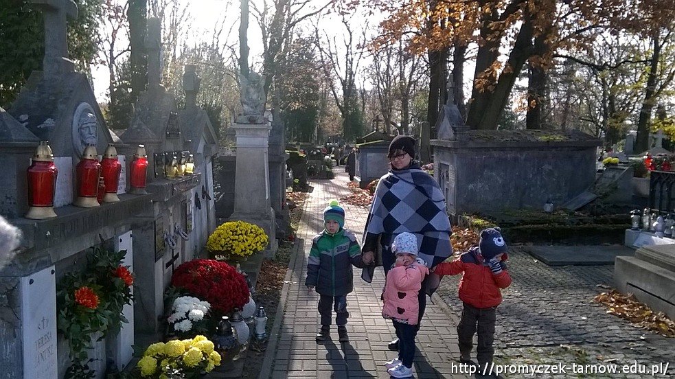 Smyki w wąskim gronie wybrały się na spacer ulicami Tarnowa. Pierwszym etapem naszej podróży był Stary Cmentarz w Tarnowie, gdzie zapaliliśmy znicz na jednym z grobów. Przedszkolaki zachowały powagę i potrafiły oddać klimat tego miejsca, chwilą zadumy.