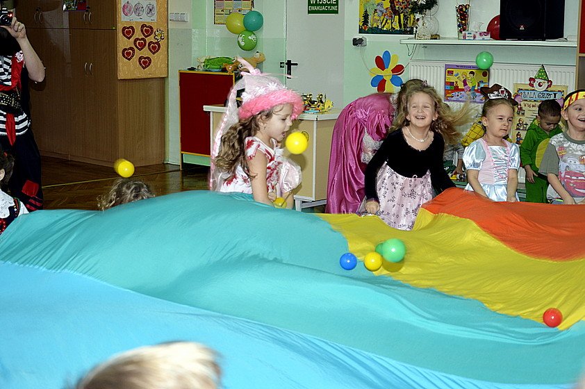Od samego rana w „Promyczku” panowała szczególna atmosfera – wszędzie wisiały kolorowe balony i serpentyny, dzieci prezentowały przyniesione przez rodziców stroje, panie kucharki przygotowywały słodki poczęstunek.