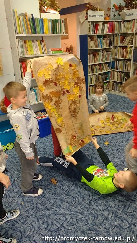 Dzieci przypomniały sobie, które ptaki zostają w Polsce na zimę, a które opuszczają nasz kraj. Zuchy poszukiwały także śladów jesieni w literaturze dla najmłodszych, a także przygotowały piękne jesienne drzew z kolorowych liści. Jak się okazuje w Bibliotece można też czasem zaszaleć - zapraszamy do oglądania zdjęć i filmu.