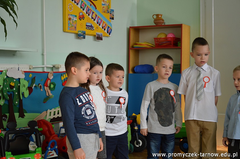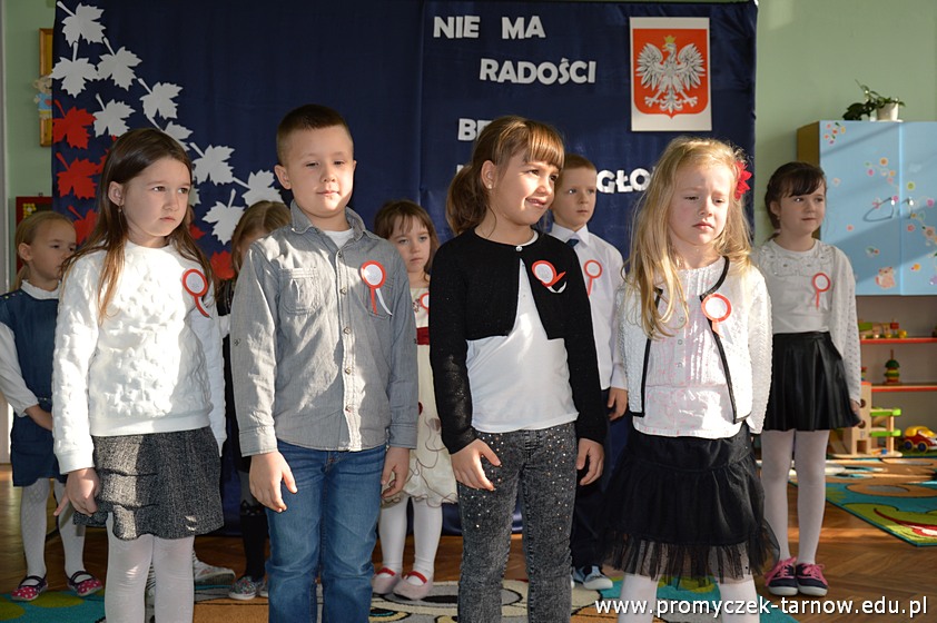 Podczas akademii panowała uroczysta powaga, a śpiew hymnu wprowadził podniosły nastrój. Warto dodać, że każdy przedszkolak dumnie nosił tego dnia kotylion w kolorach narodowych.