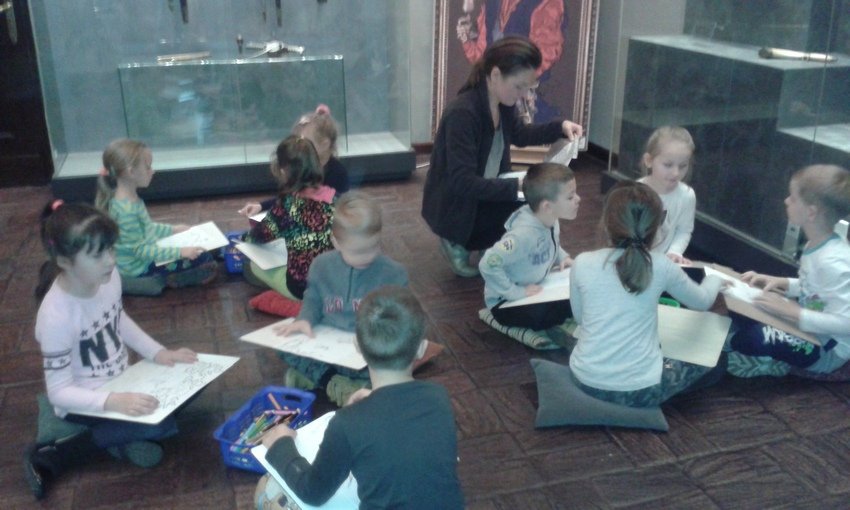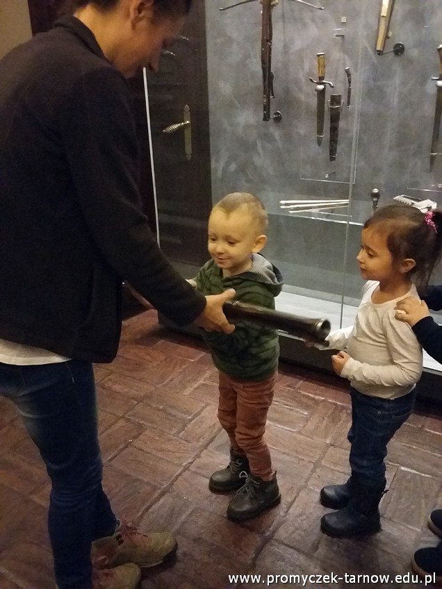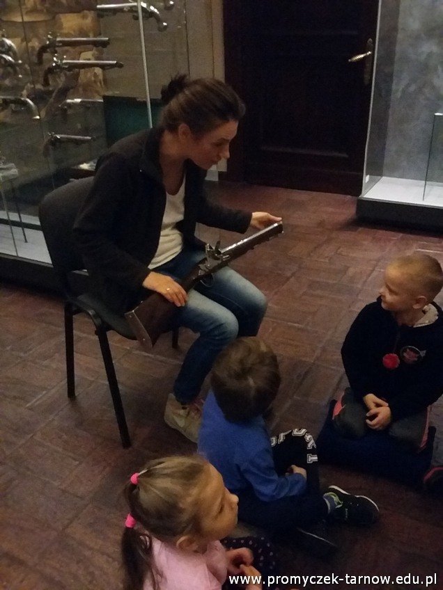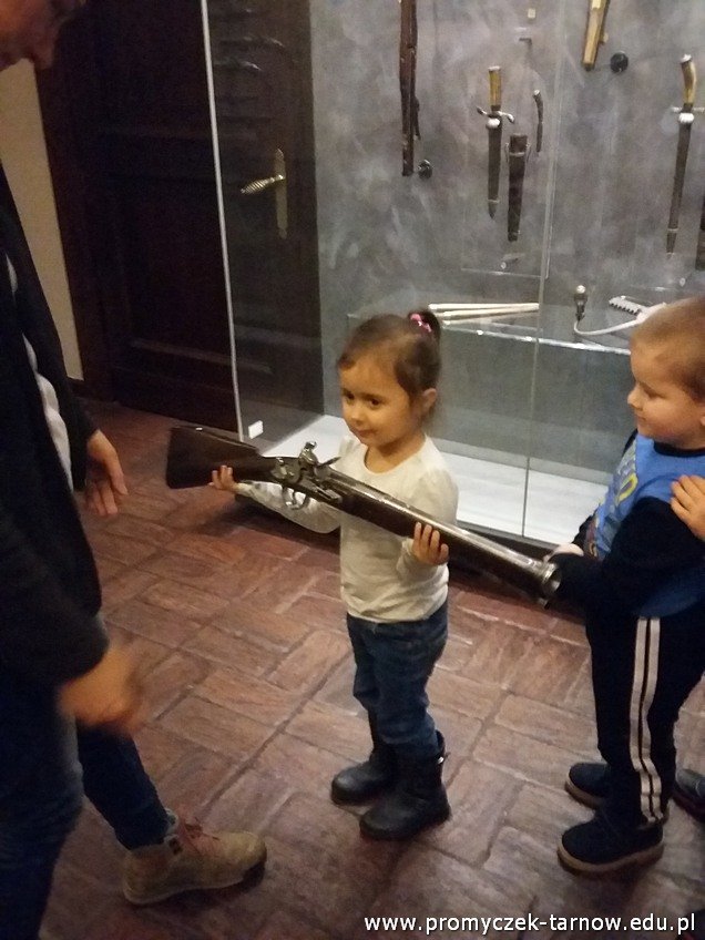 Pierwsze zajęcia bardzo się wszystkim spodobały. Dzieci dowiedziały się jak ważne dla ludzi były dawniej polowania, na jaką zwierzynę polowano oraz jakich przyrządów używano. Szczególny zachwyt można było zobaczyć w oczach chłopców na widok rozmaitych rodzajów broni. Nie możemy się już doczekać kolejnych zajęć!