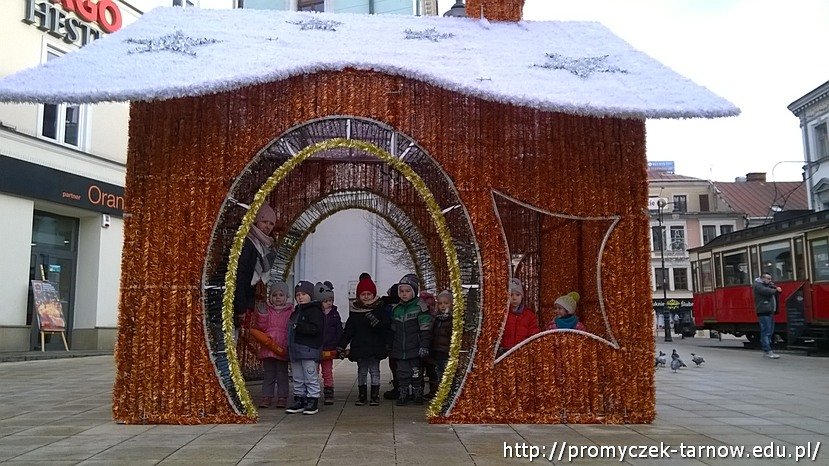 W oczekiwaniu na święta smyki wyruszyły w drogę, by podziwiać bożonarodzeniowe drzewka udekorowane ozdobami w kształcie pierniczków, znajdujące się na tarnowskim rynku.