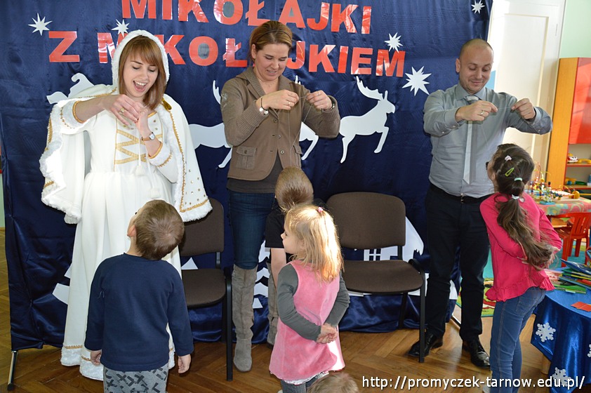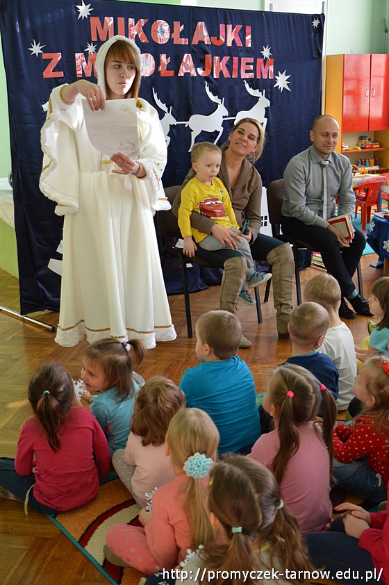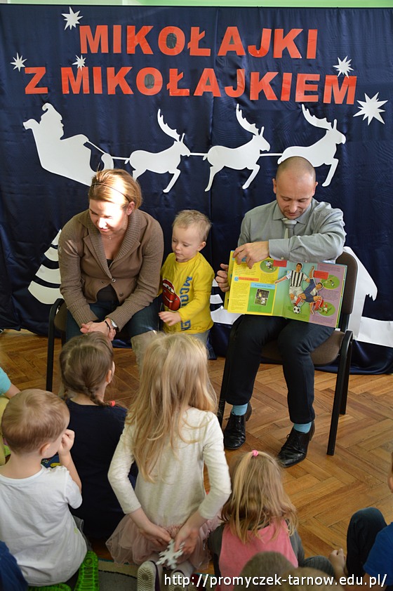 Na dzień przed spotkaniem ze Św. Mikołajem w przedszkolu odbyły się Mikołajki z Mikołajkiem w ramach akcji Cała Polska Czyta Dzieciom. Na spotkaniu nie zabrakło gości, tym razem byli to pracownicy Biblioteki Pedagogicznej w Tarnowie, którzy przeczytali dzieciom fragmenty przygód chłopca o imieniu Mikołajek.