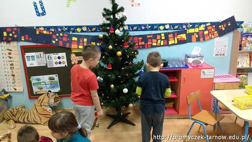 Grupa Zuchy zabrała się do tego zadania z wielką werwą. Dzieci przeszukiwały pudełka w poszukiwaniu najpiękniejszych ozdób. Efekt końcowy przeszedł nasze najśmielsze oczekiwania! Dzieci z dumą prezentowały choinkę swoim rodzicom - zawsze przy zgaszonym świetle, bo wszyscy zgodnie uznali, że wtedy wygląda ona najpiękniej!