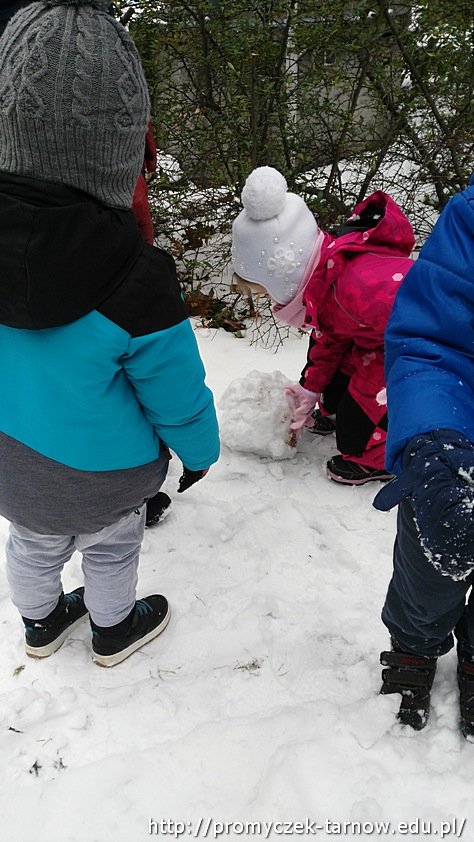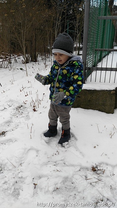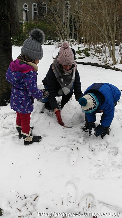 Smyki spędzają aktywnie czas nawet zimową porą. Począwszy od lubianego przez grupę malowania palcami po ogrodowe spacery. Korzystając z odrobiny słońca stworzyliśmy Bałwanka Bouliego z marchewkowym nosem. Jak więc widać zimowe mrozy i opady śniegu nie ograniczają aktywności najmłodszej grupy.