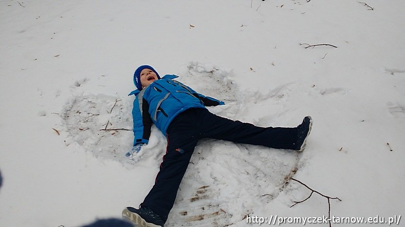Cóż to była za wspaniała zabawa! Powstał nie tylko śnieżny bałwan, ale także aniołki śniegowe, a bitwa na śnieżki dawno nie była tak ekscytująca. Słoneczko ogrzewało zuchowe noski, oby jak najdłużej trwałą taka piękna zimowa aura.